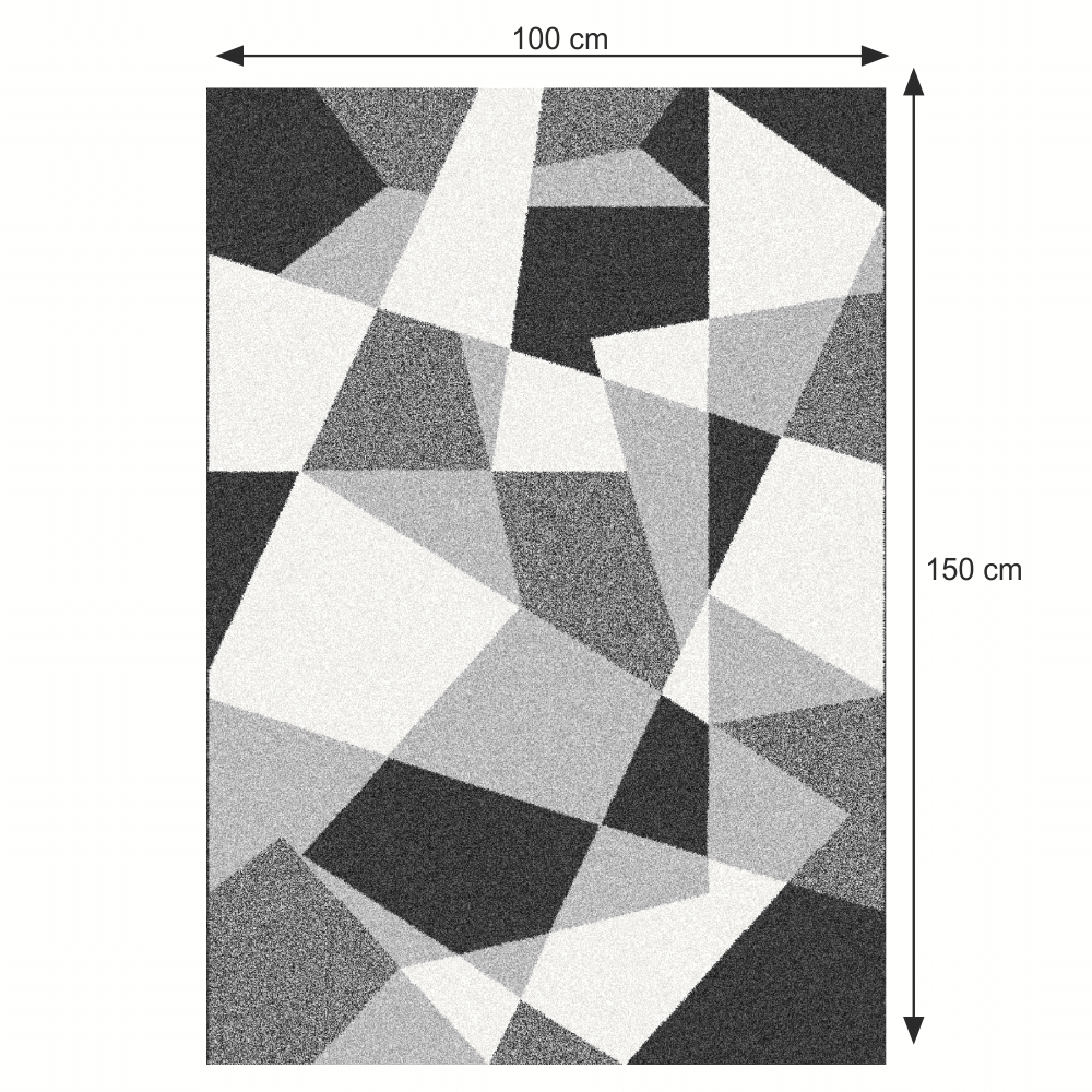 Materiál: 100% polypropylen Barva: černá / šedá / bílá Vzor: geometricky Rozměry (ŠxD): 100x150 cm Výška vlasu: 0,6 cm Gramáž: 1300g / m2 Tloušťka koberce: 0,8 cm Vhodný na podlahové topení Neperte v pračce Nebieľte nečistěte chemicky Nesušte v sušičce nežehlete Dodávané v monte
