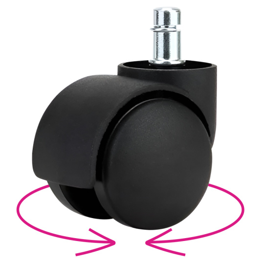 Materiál: nylonový plast Barva: černá Průměr kolečka: 5 cm Šířka kolečka: 4,5 cm Délka vřetene: 2 cm Průměr vřetene: 1,1 cm Náhradní kolečka Zatížení kolečka: Max. 50 kg Set 5 ks Vhodné pro měkké podlahy Pro kancelářská křesla Pro kancelářské židle Náhradní kolečka Jednoduchá montáž jen kliknutím Otočné o 360°