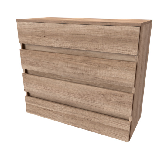 Moderní bezúchytová komoda v atraktivním designu, jenž najde své využití v jakékoli místnosti. Vyrobeno z lamina o síle 18mm. Kvalitní zásuvky, úchytky a pojezdy jsou přizpůsobeny častému otevírání. Výběr akčních dekorů. Kvalitní kování a spojovací materiál je bez použití plastových součástek,vyjma ochranných krytek.