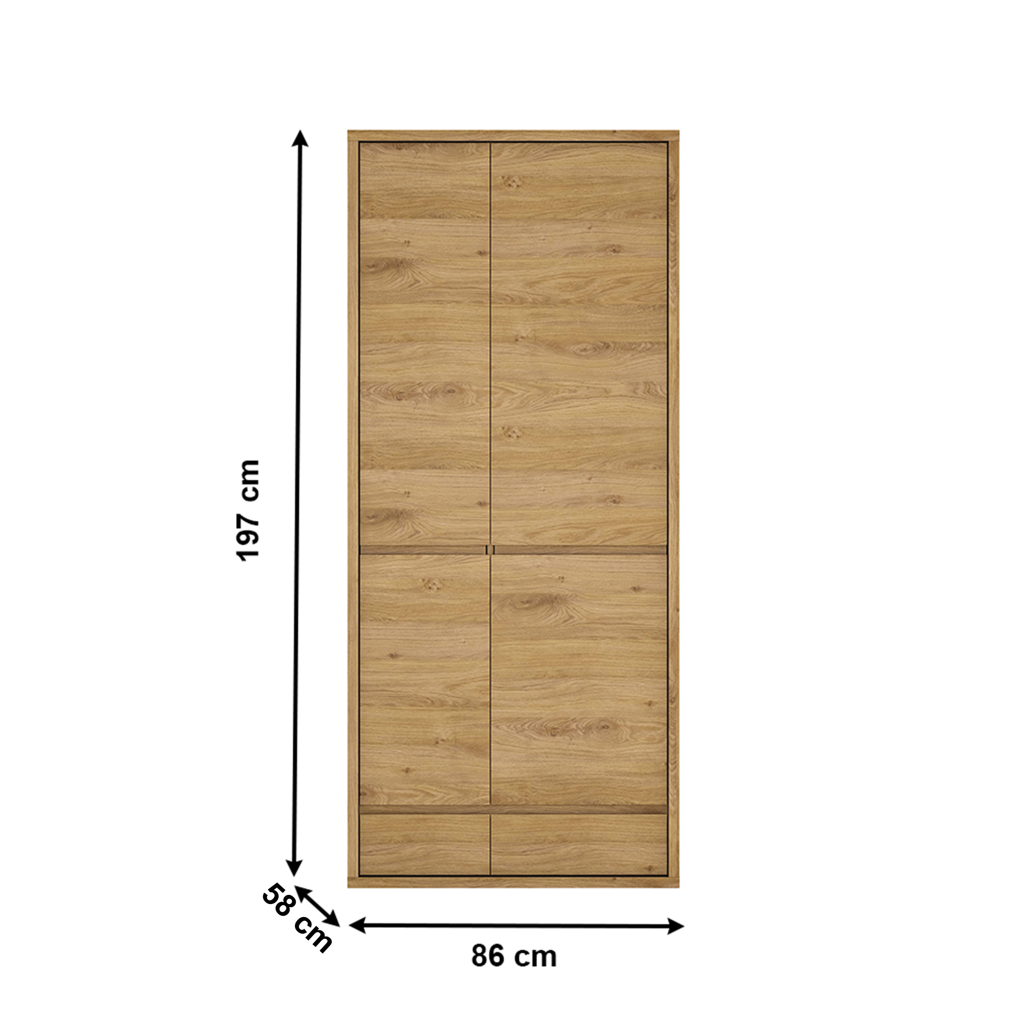 Materiál: laminovaná DTD Barevné provedení: dub Shetland/šedá Rozměry (ŠxHxV): 86x58x197 cm Tloušťka korpusu: 2,8 cm bez úchytová Jednoduchá a elegantní kombinovaná hrubý korpus 2 šuplíky 4 poličky 2 tyče zavřená moderní styl vysoká kvalita precizní zpracování Odolný vůči poškrábání, UV záření, vysokým teplotám S nožičkami Nosnost poličky: 5 kg Nosnost šuplíku: 5 kg Dodávané v demontu