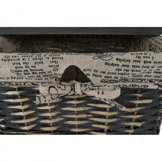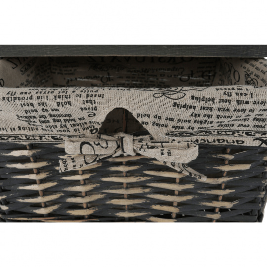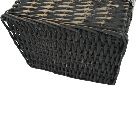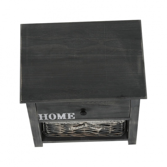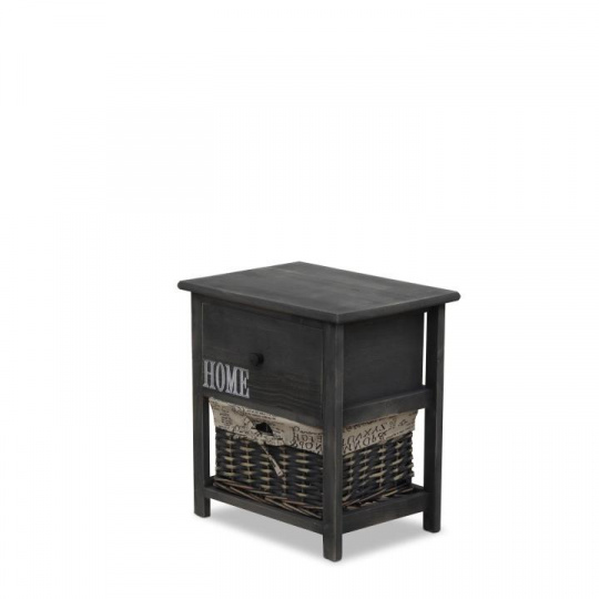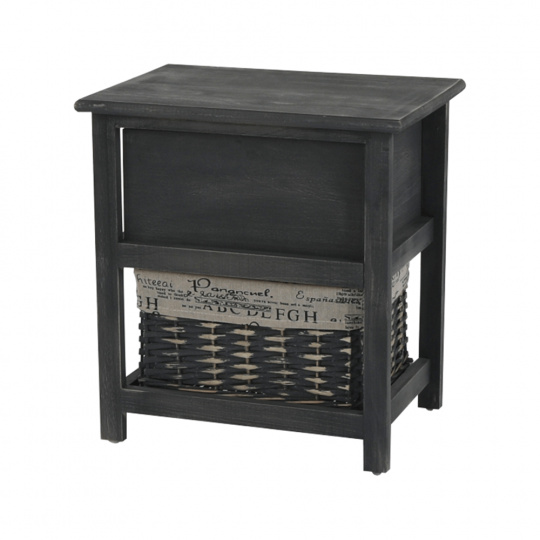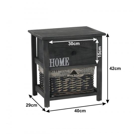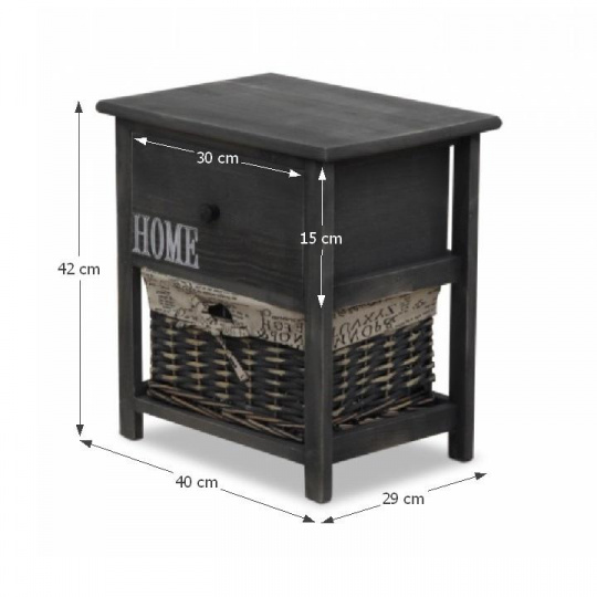 komoda (případně noční stolek) s pevným rámem, s funkční zásuvkou a proutěným košíkem, materiál: dřevo / proutí, barevné provedení: tmavě hnědá, ŠxVxH: 40x42x29 cm.