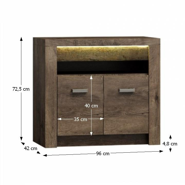 Komoda 10 z luxusního sektorového nábytku Korpus hrubý až 48 mm, Tloušťka materiálu zbývající části: 16 mm, úchytky kovové Materiál DTD laminovaná, ABS hrany, barevné provedení: jasan tmavý, Rozměry ŠxHxV: 96x42x72,5 cm. Možnost dokoupení LED osvětlení v ceně 890 Kč. Dodávané v demontu.
