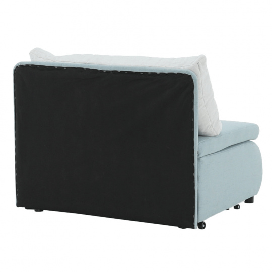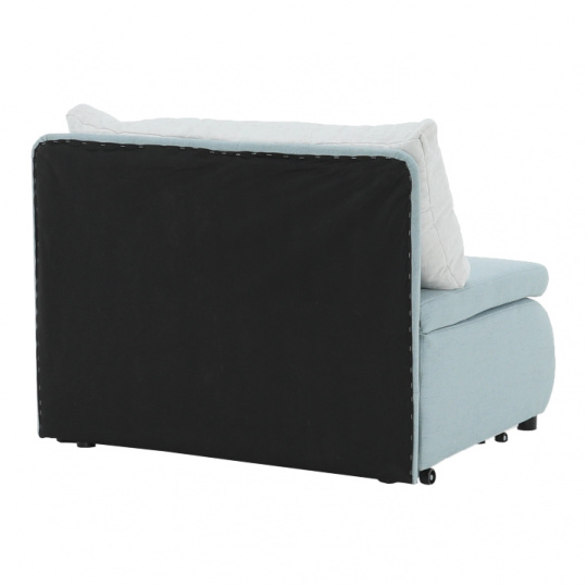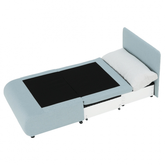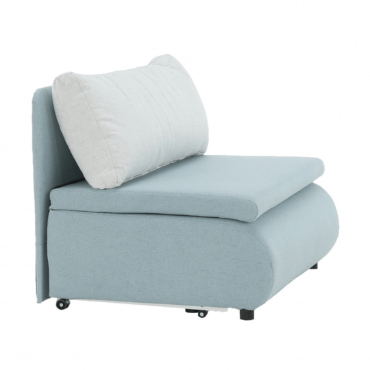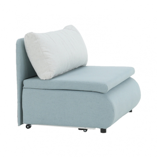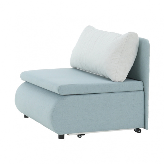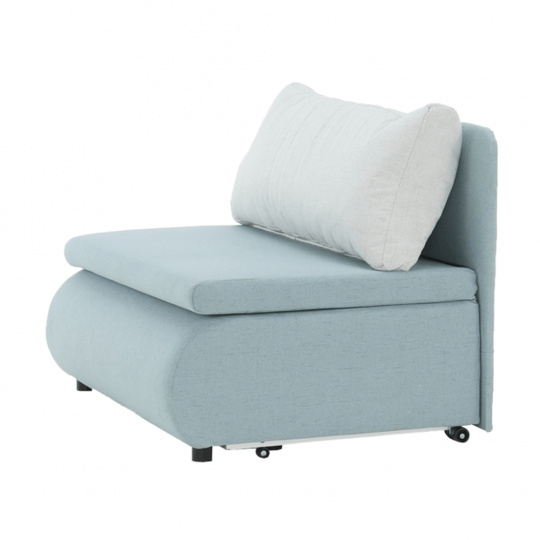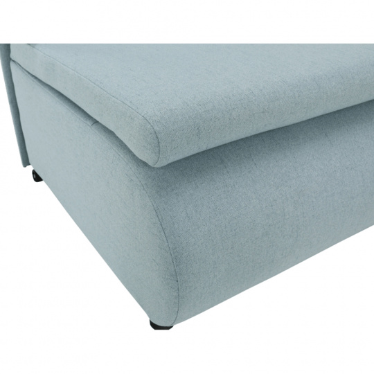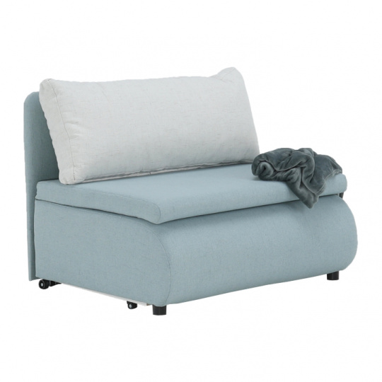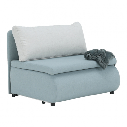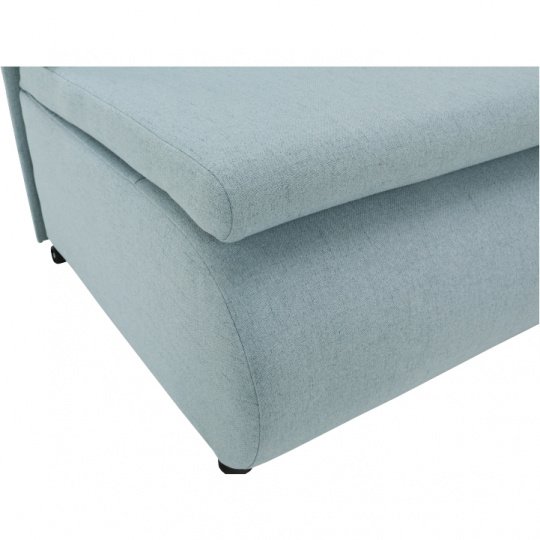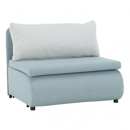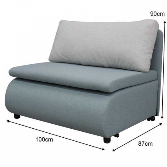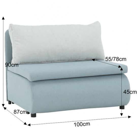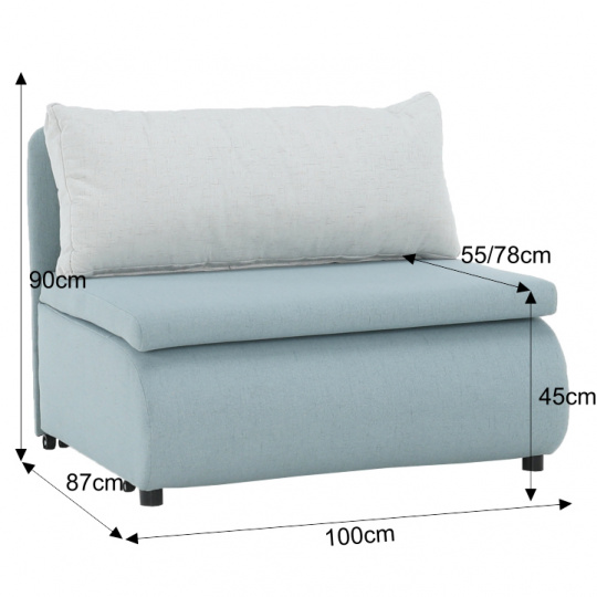 Materiál: látka Cablo Oděruodolnost textilie podle testu Martindale: 72 000 oděrek Barva: mentolová 10 / krémová 01 Rozměry (ŠxHxV): 100x87x90 cm Plocha na spaní (ŠxD): 100x190 cm Výška sedu: 45 cm Výška spodního prostoru od podlahy: 5 cm Hloubka sedu s polštářem: 55 cm Hloubka sedu bez polštáře: 78 cm Výška lůžka po rozložení: 35 cm Podpěrný polštář (ŠxV): 100x40 cm Nosnost: 70 kg S úložným prostorem funkce rozkládání Molitanová výplň sedáku Dodávané s polštářem Polštář se vzorem Na nožičkách, kolečka Dodávané v demontu