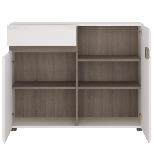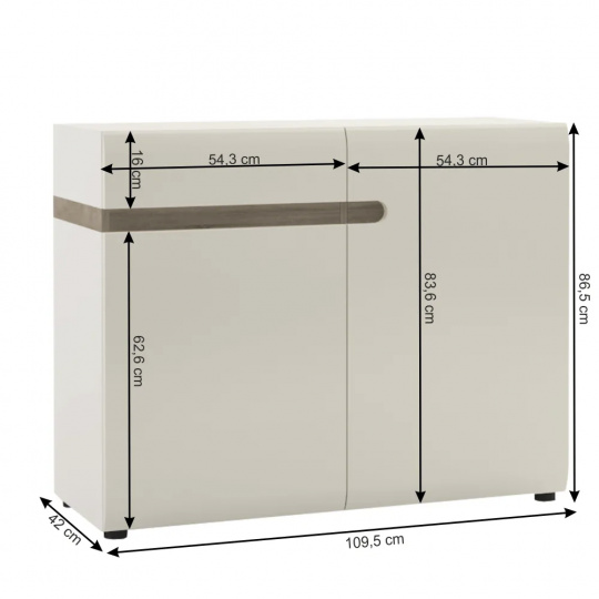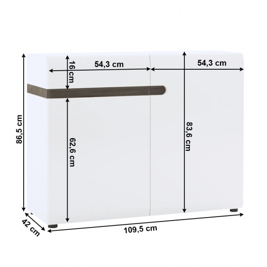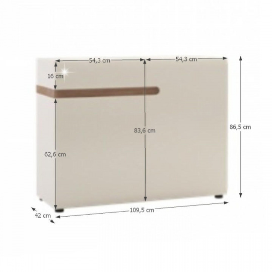 Komoda 2dveřová se šuplíkem LYNATET TYP 35 Materiál: laminovaná DTD/fóliovaná MDF Barva: dub sonoma truflový/bílá s extra vysokým leskem Rozměry (ŠxHxV): 109,5x42x86,5 cm Tloušťka materiálu: 16 mm Dvoudveřová Korpus je v matném provedení Dvířka jsou v provedení extra vysoký lesk Jeden šuplík Na nožičkách Dodáváno v demontu