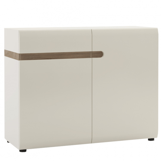 Komoda, bílá extra vysoký lesk HG / dub sonoma truflový, LYNATET TYP 35