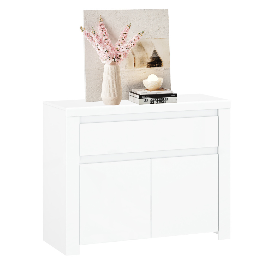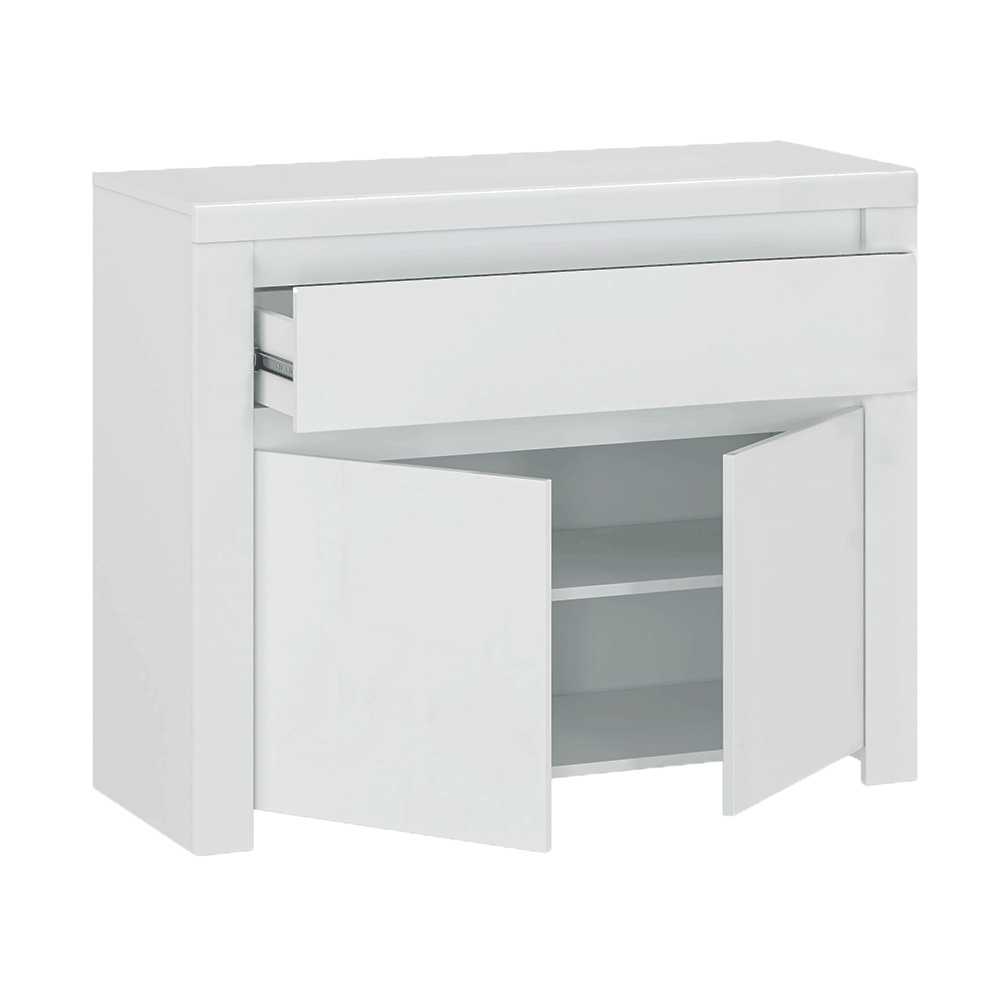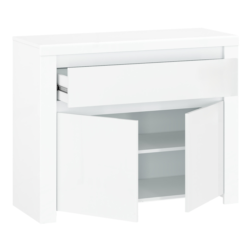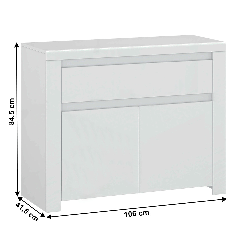 Komoda 2D1S, bílý lesk, LINDY