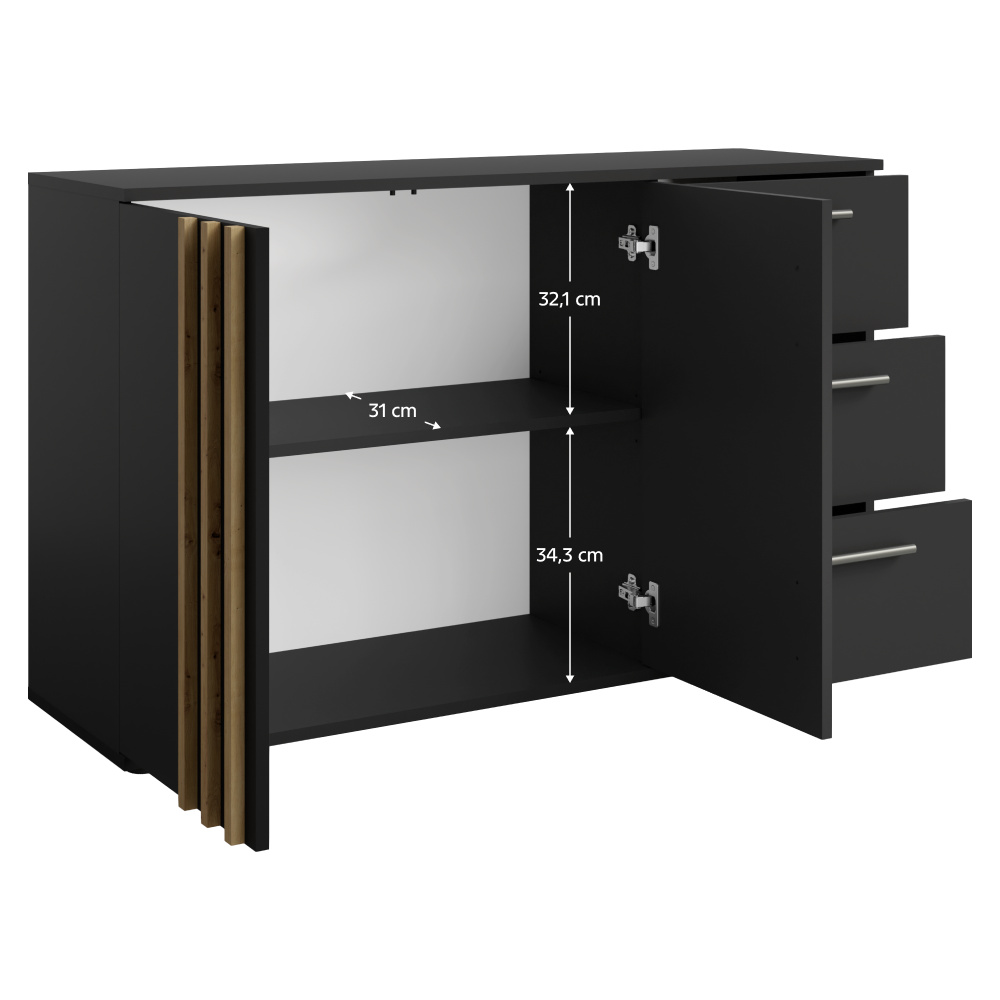 Komoda, 2D3S, černá/dub artisan, TOLIS TYP 3