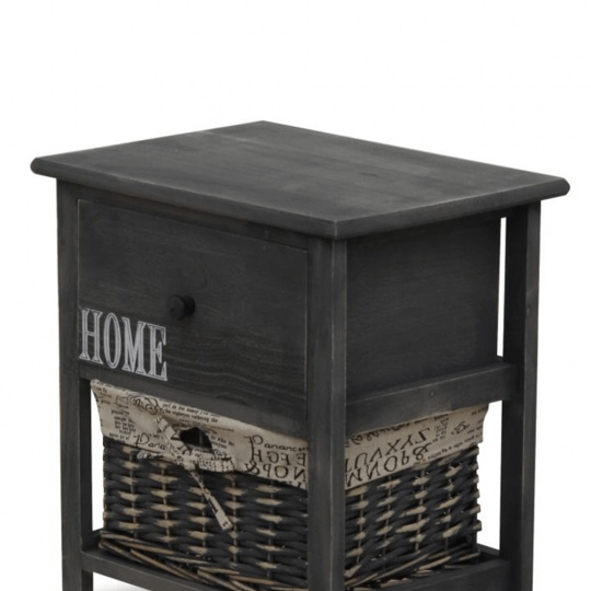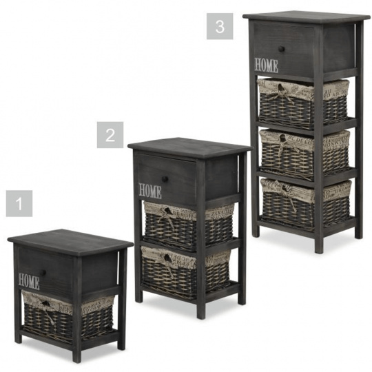 komoda s pevným rámem, s funkční zásuvkou a 2 proutěnými košíky, materiál: dřevo / proutí, barevné provedení: tmavě hnědá, ŠxVxH: 40x63x29 cm. Hmotnost: 3.9kg