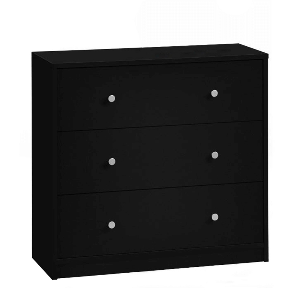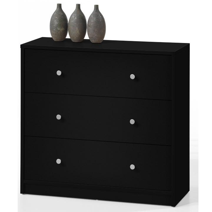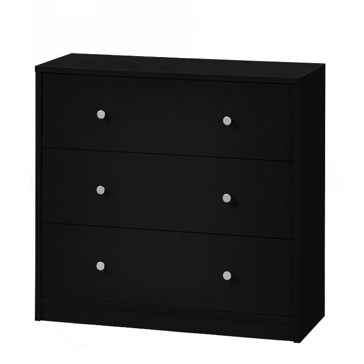 3- šuplíková komoda MAY 3 Materiál: DTD laminovaná Barevné provedení: černá Rozměry (ŠxHxV): 72,4x30,1x68,3 cm Tloušťka materiálu: 12 mm Dodávané v demontu.