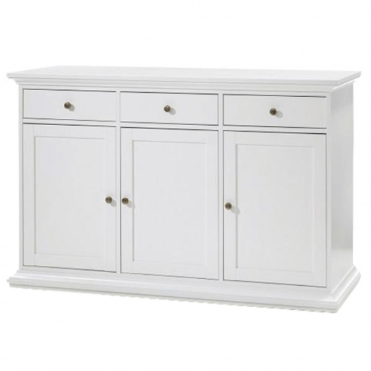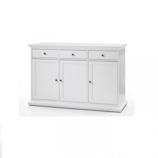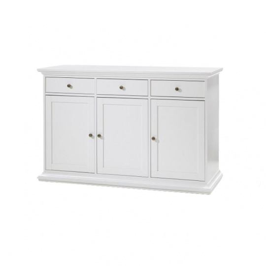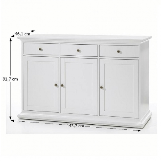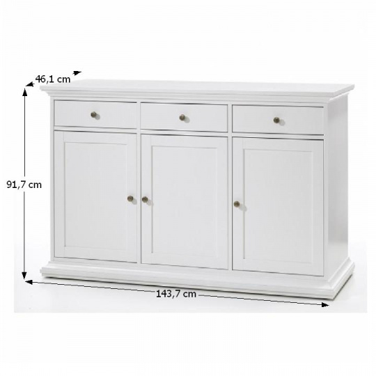 Komoda PARIS 3D3Z 77824 Materiál: DTD laminovaná/lakovaná MDF Barevné provedení: bílá Rozměry (ŠxHxV): 143,7x46,1x91,7 cm Tloušťka materiálu: 18 mm Dodáváno v demontu.