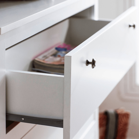 Materiál: DTD laminovaná/ABS hrany/MDF Barva: bílá Rozměry (ŠxHxV): 92x35x98 cm Výška nožiček 16 cm Tloušťka materiálu: 1,6 cm Nosnost vrchní desky: 10 kg Nosnost šuplíku: 3 kg Tři šuplíky Rozměry šuplíku (ŠxV): 81,7x20,9 cm MDF dvířka Dodávána v demontu