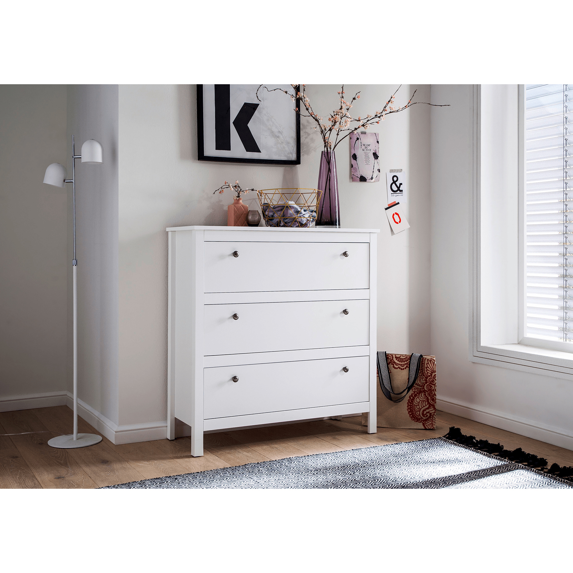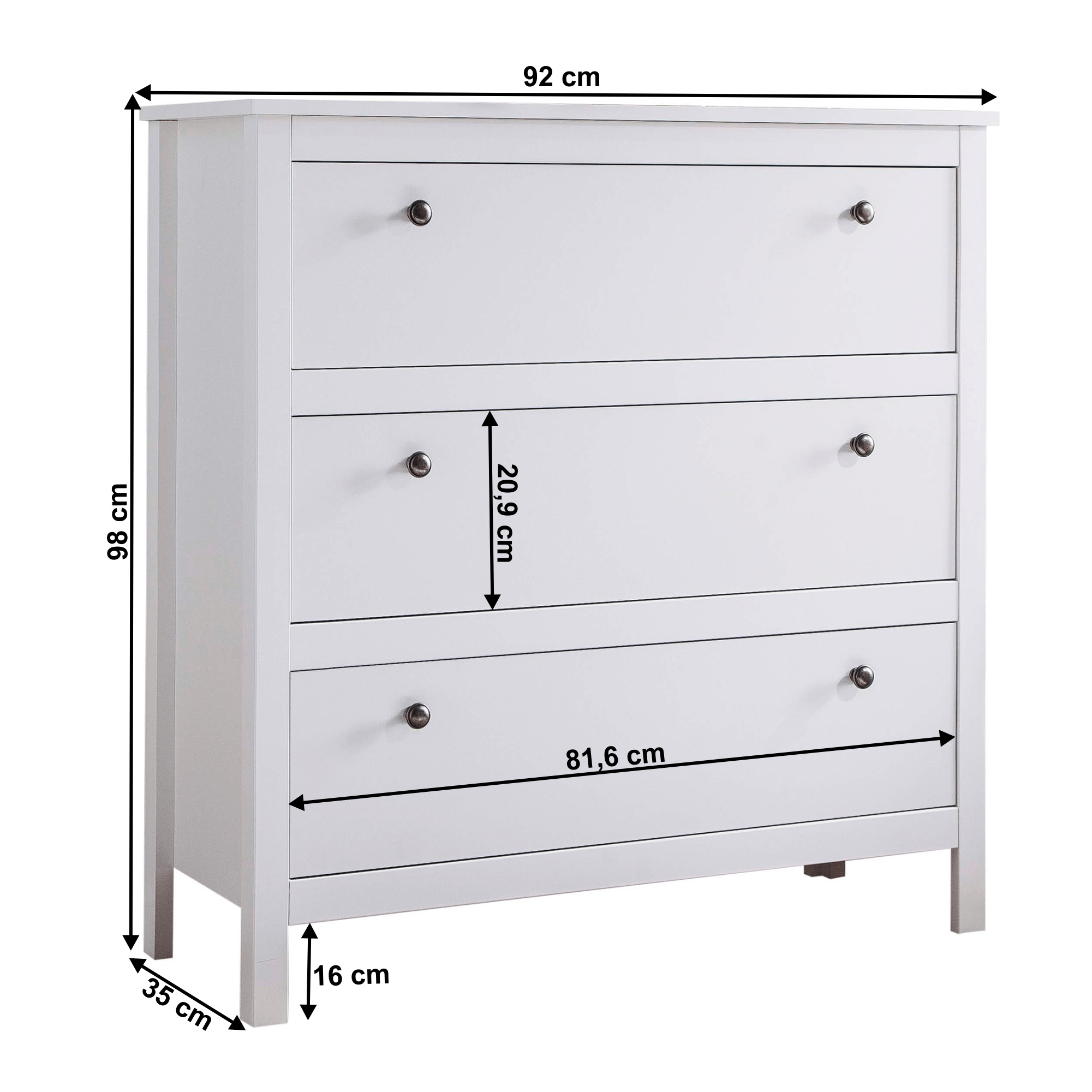 Materiál: DTD laminovaná/ABS hrany/MDF Barva: bílá Rozměry (ŠxHxV): 92x35x98 cm Výška nožiček 16 cm Tloušťka materiálu: 1,6 cm Nosnost vrchní desky: 10 kg Nosnost šuplíku: 3 kg Tři šuplíky Rozměry šuplíku (ŠxV): 81,7x20,9 cm MDF dvířka Dodávána v demontu
