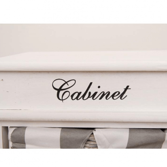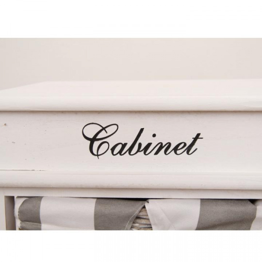 komoda se 4 proutěnými košíky v pevném dřevěném rámu, barevné provedení šedobílé, materiál: dřevo / proutí, rozměry ŠxVxH: 38x86x28 cm.