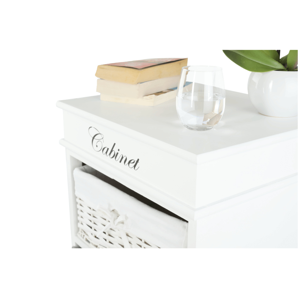 Komoda, dřevo / proutí / látka, bílá, Rafaello 9