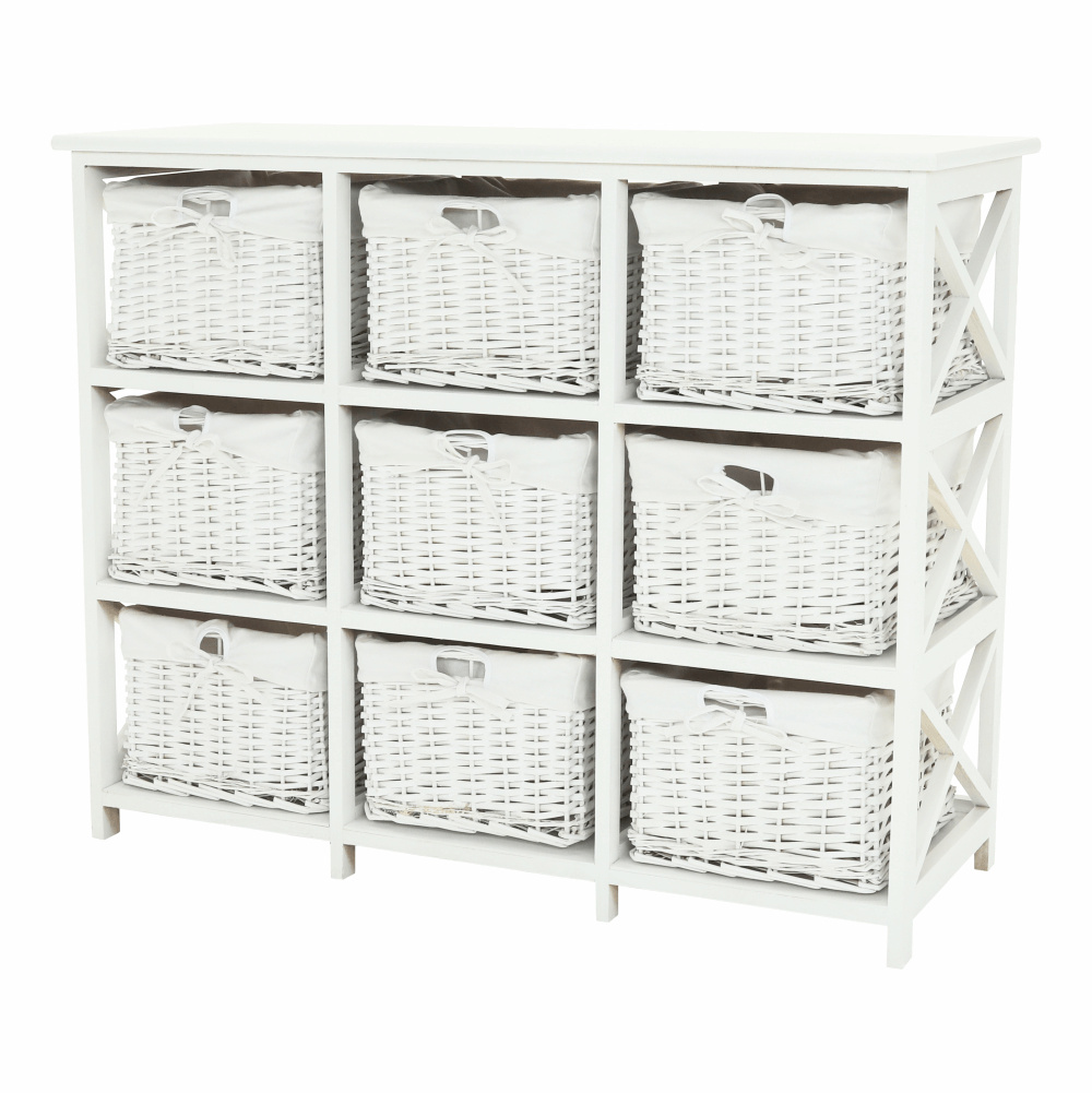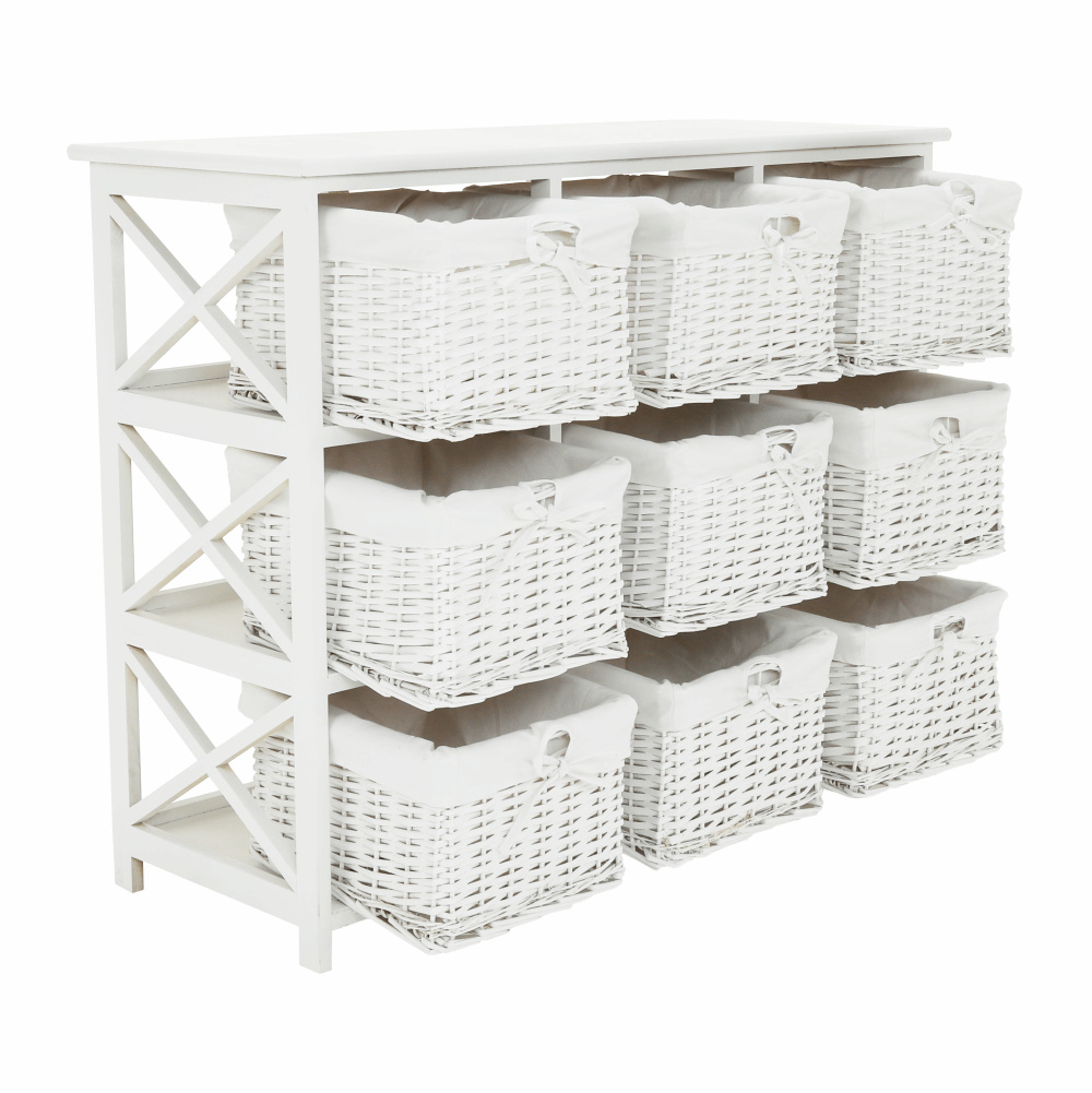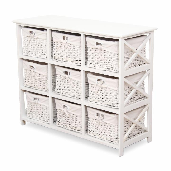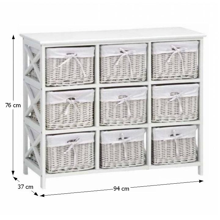 Komoda s devíti košíky Rafaello 9 Materiál: proutí / dřevo / látka Barva: bílá Rozměry (ŠxHxV): 94x37x76 cm Dodávané v monte.