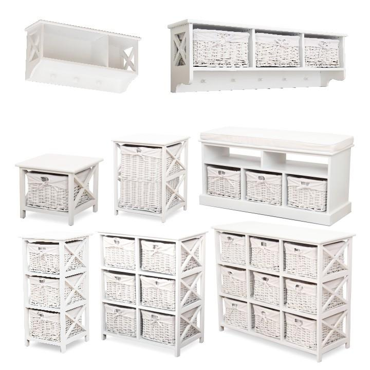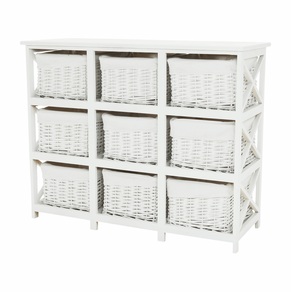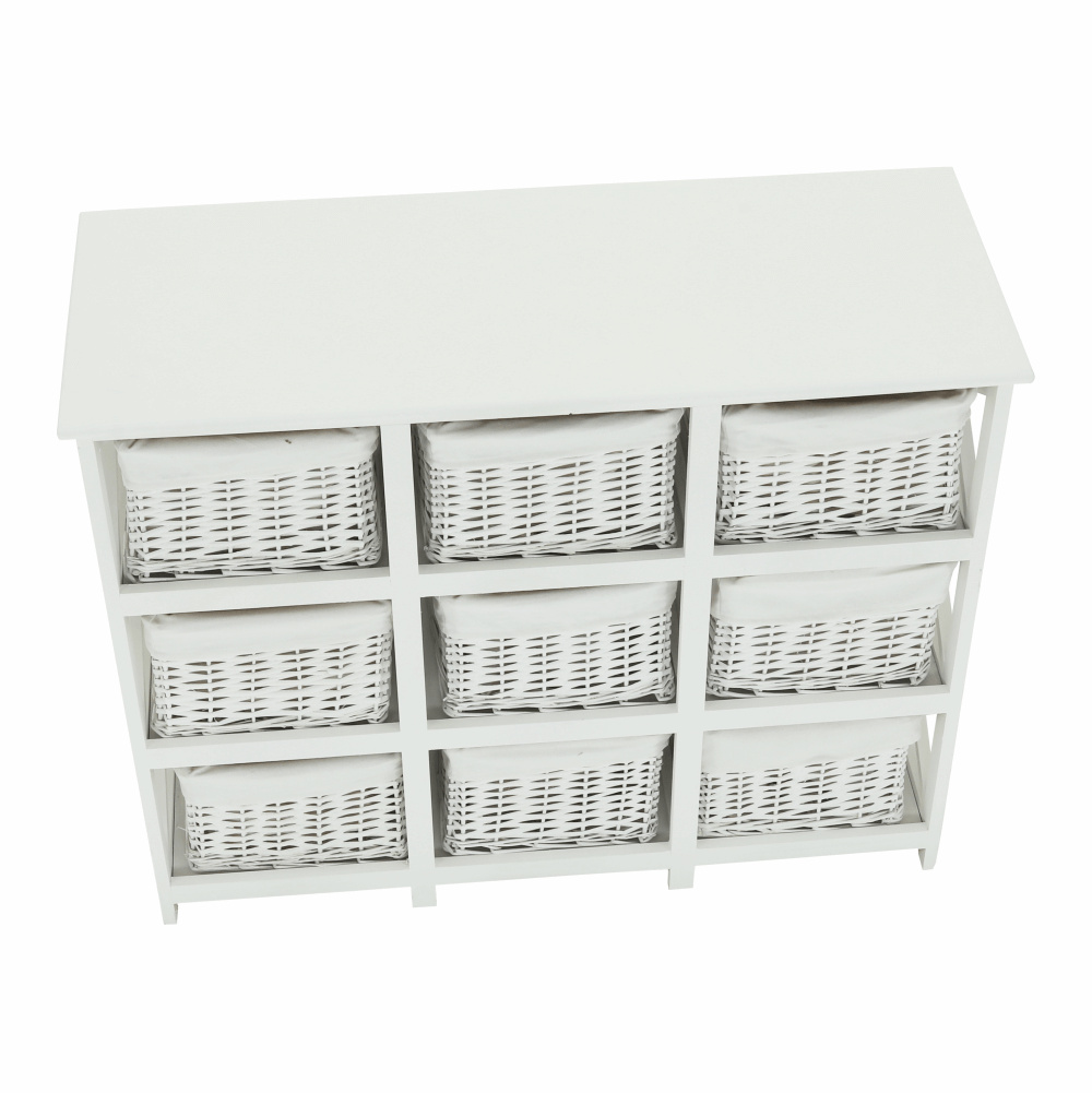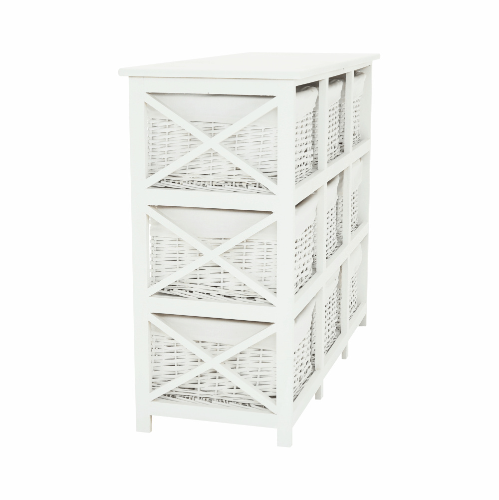 Komoda s devíti košíky Rafaello 9 Materiál: proutí / dřevo / látka Barva: bílá Rozměry (ŠxHxV): 94x37x76 cm Dodávané v monte.