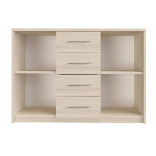 Své využití si najde pro ukládání oblečení, dokumentů, ale také různých drobností pro každodenní život, zároveň můžete na jejím horním plátu mít vystavené fotografie, dekorace nebo květiny dle vlastního uvážení. Kvalitní zásuvky, úchytky a pojezdy jsou přizpůsobeny častému otevírání a v celkovém provedení se tak stává komoda velmi dobrou volbou. Na výběr je z třinácti akčních dekorů a použití kvalitního lamina v kombinaci tloušťky 18 a 25 mm. Skladem v dekoru akácie světlá.