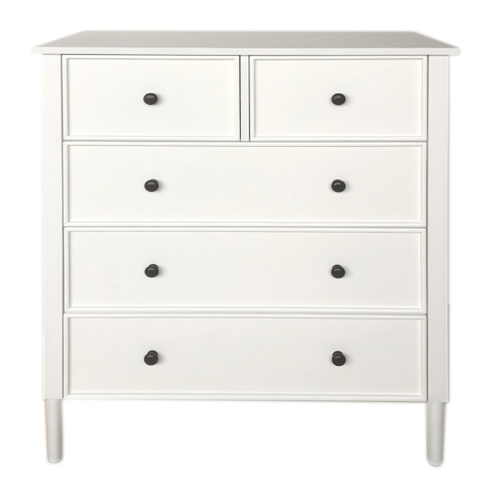 Materiál: MDF Barva: bílá Rozměry (ŠxHxV): 80x40x95cm Tloušťka materiálu: 1,5 - 3,7 cm Tři větší šuplíky Dva menší šuplíky Dřevěné úchytky Barva úchytek: černá Nosnost: 30 kg Nosnost šuplíku: 10 kg Na nožičkách Výška nožiček: 15 cm Doporučujeme připevnit ke zdi Provensálský styl Dodáváno v demontu