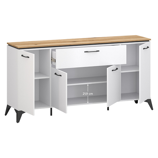 Komoda, bílá/dub evoke, VELIS 4D1S