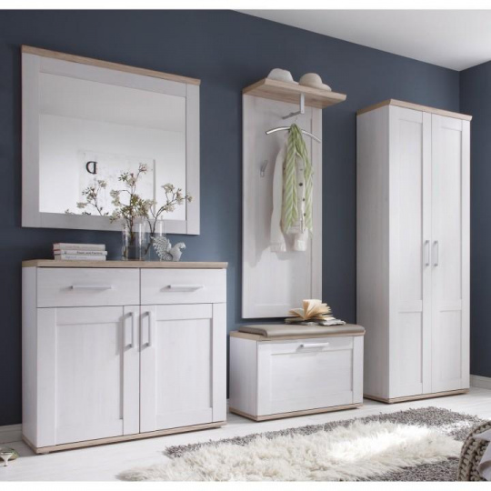 Komoda z předsíňové sestavy PROVENSAL Materiál: DTD fóliovaná Provedení: bílá / dub San Remo Rozměry (ŠxHxV): 96x38x91 cm Dodávané v demontu