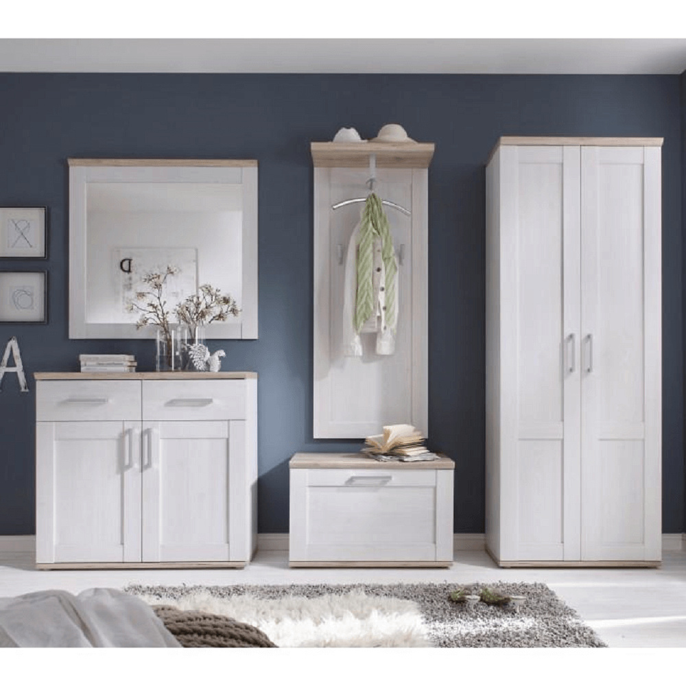 Botník z síňové sektorové sestavy ProVens. Bílý korpus, vrchní a spodní plát dub San Remo DTD fóliovaná Rozměry (ŠxHxV): 76x38x50 cm. Dodávané v demontu. Hmotnost: 18.8kg