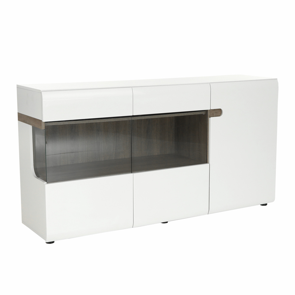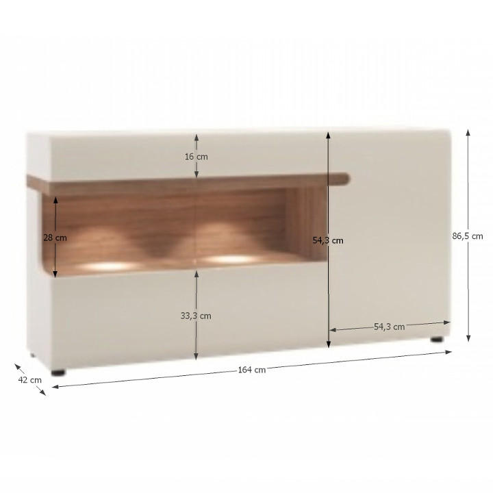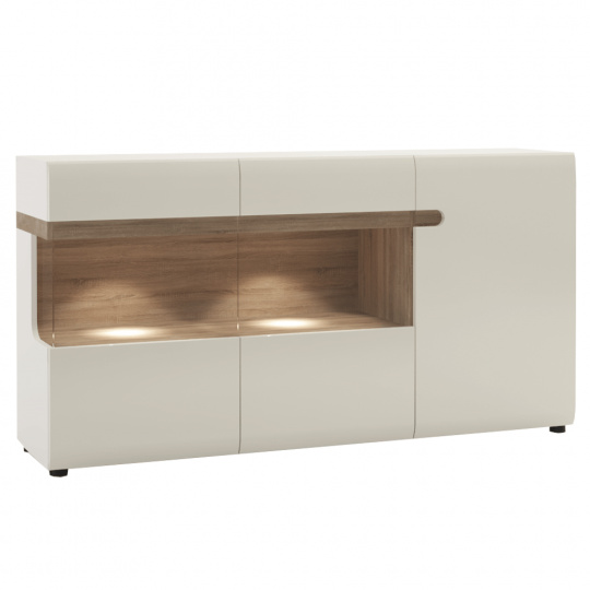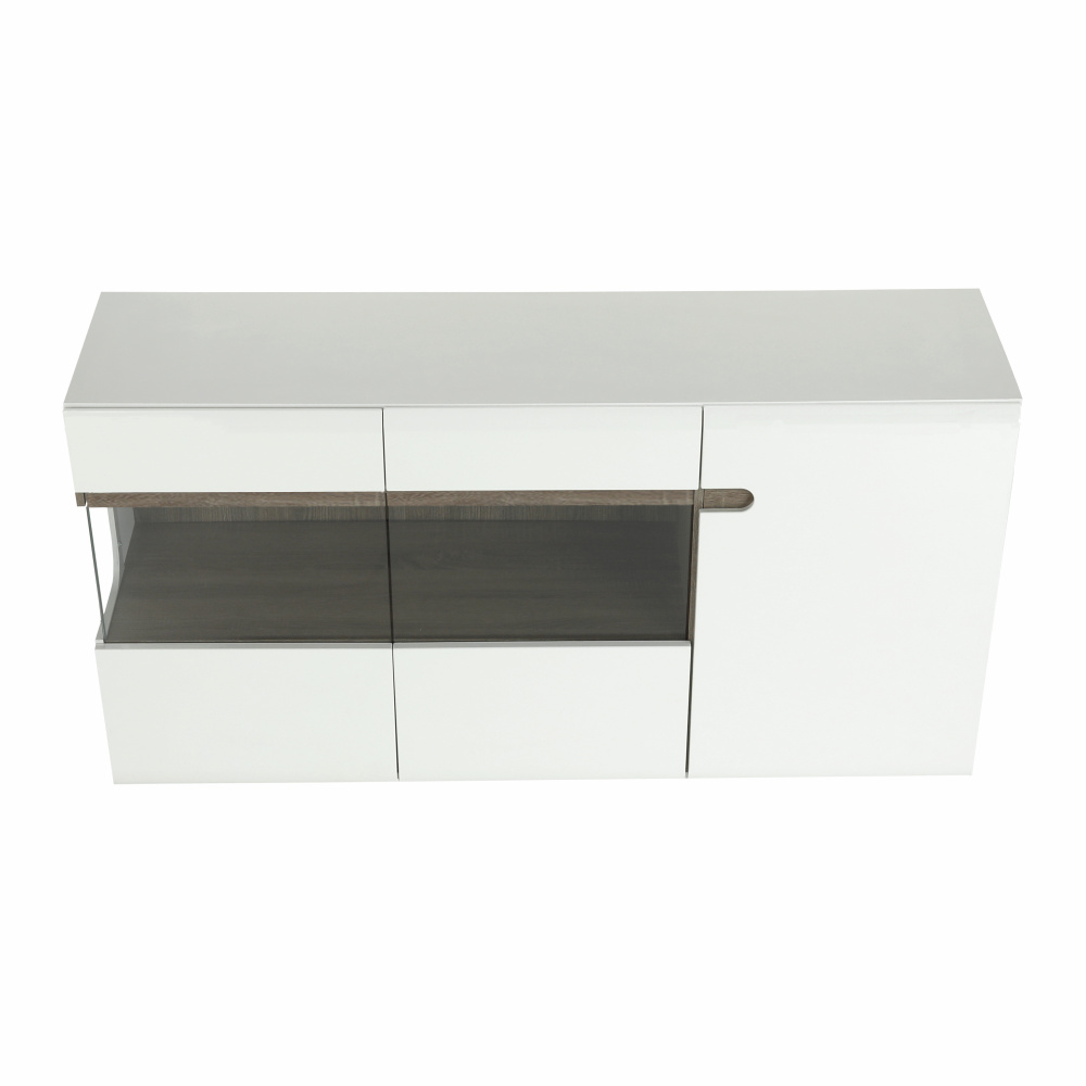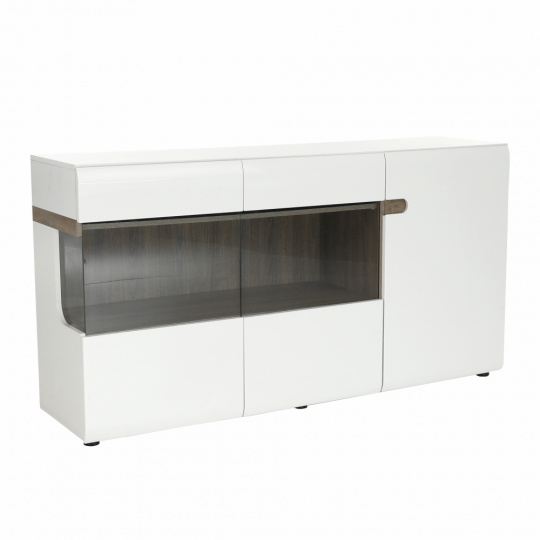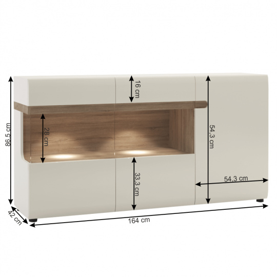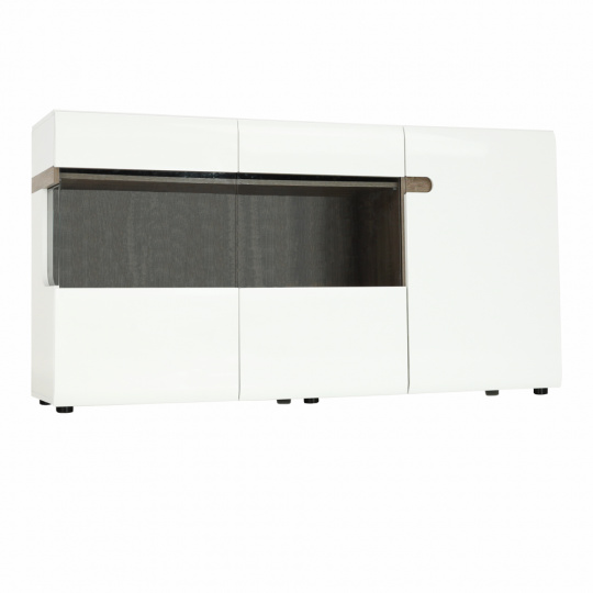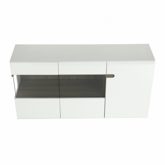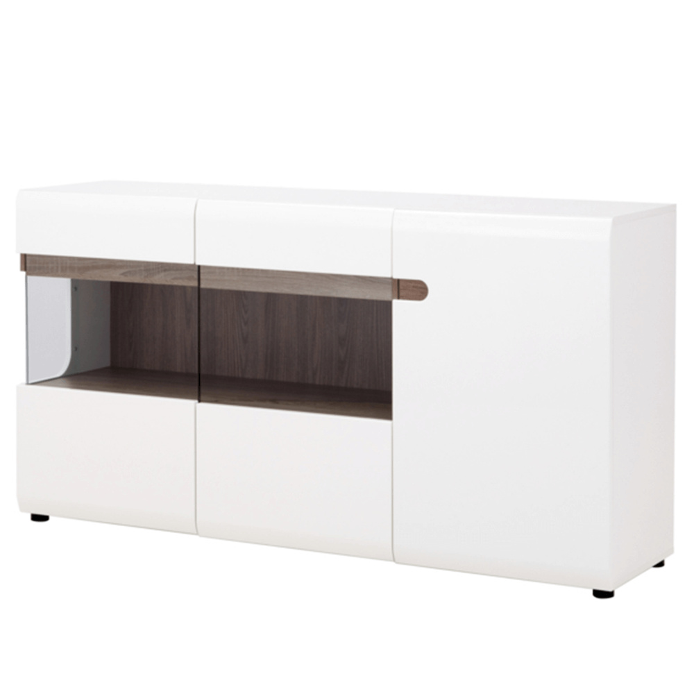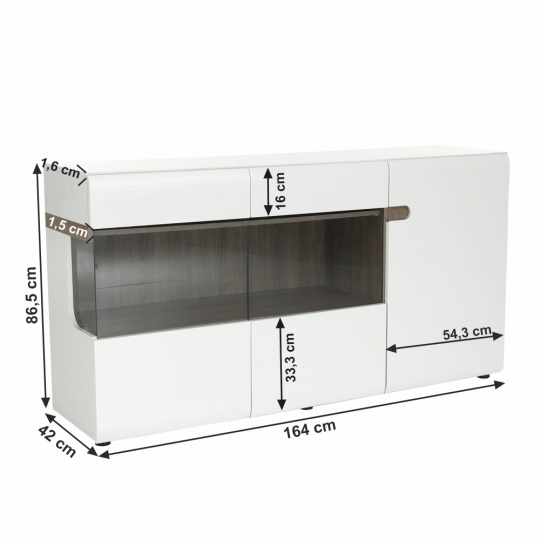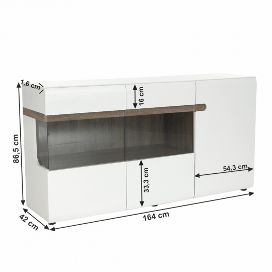 komoda 3dveřová Lynatet TYP 42, Materiál: laminovaná DTD/fóliovaná MDF/sklo Barva: dub sonoma truflový/bílá s extra vysokým leskem Rozměry (ŠxHxV): 164x42x86,5 cm Tloušťka materiálu: 16 mm Třídveřová Korpus je v matném provedení Dvířka jsou v provedení extra vysoký lesk Tloušťka materiálu vnitřní poličky: 1,5 cm Na nožičkách Dodáváno v demontu
