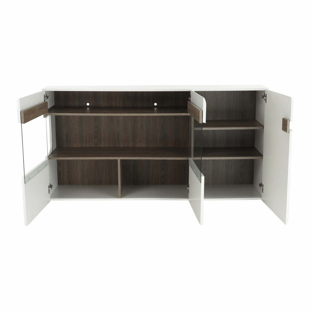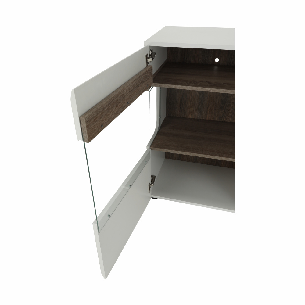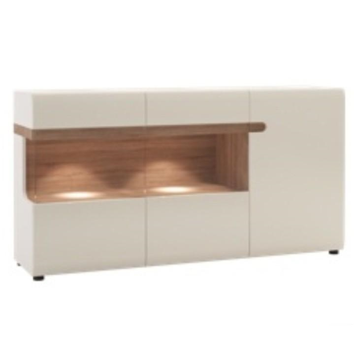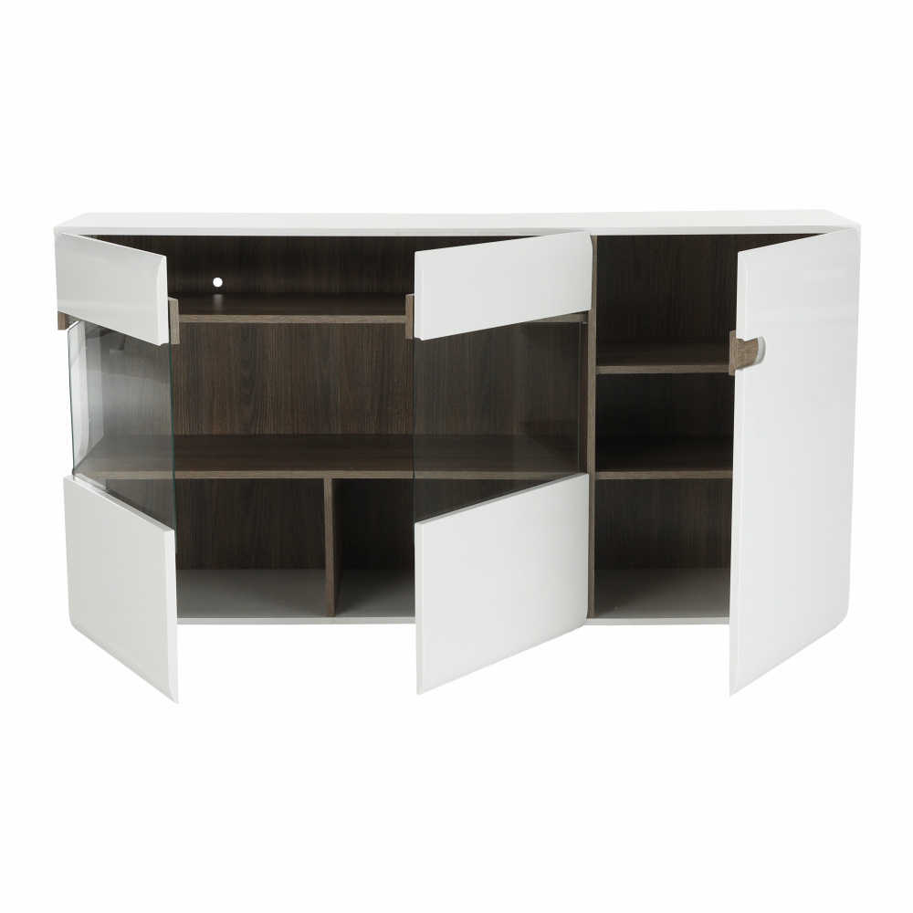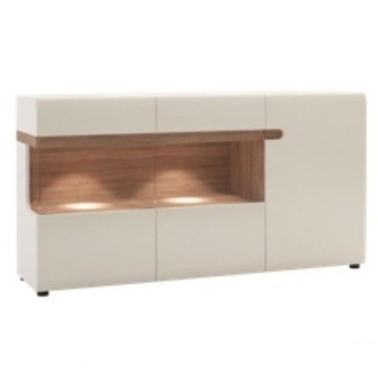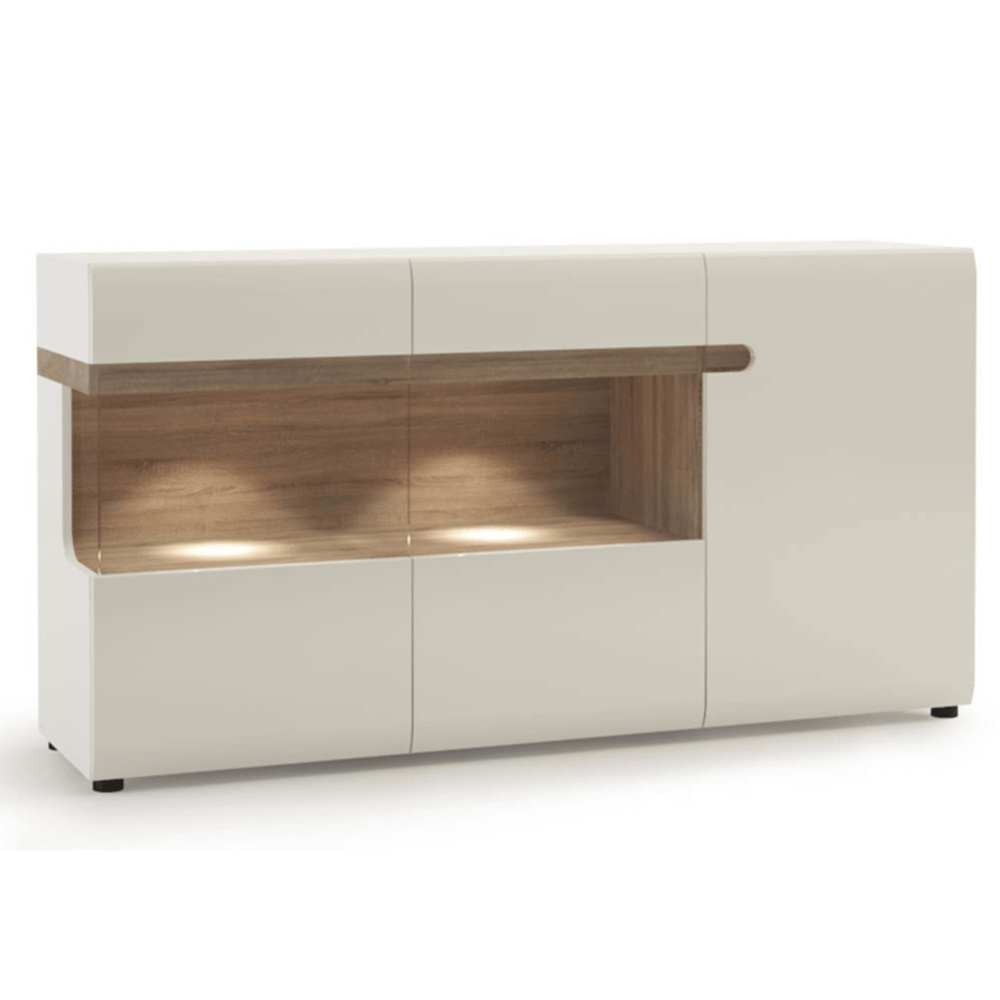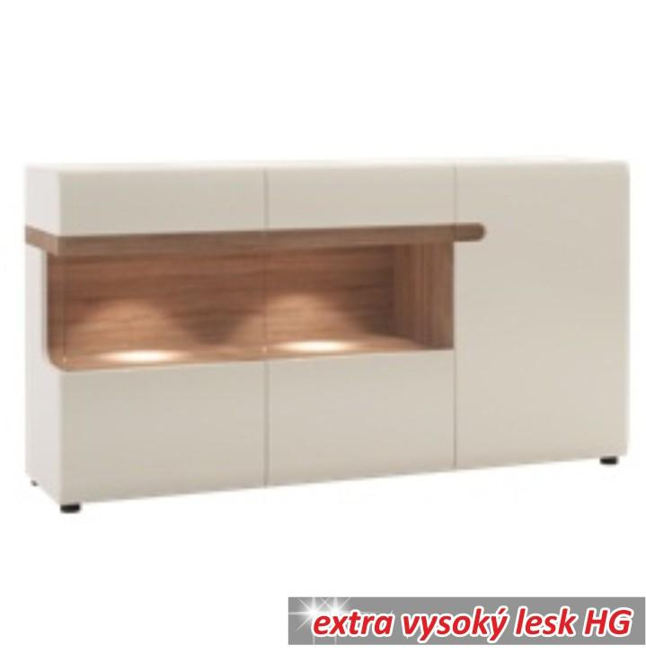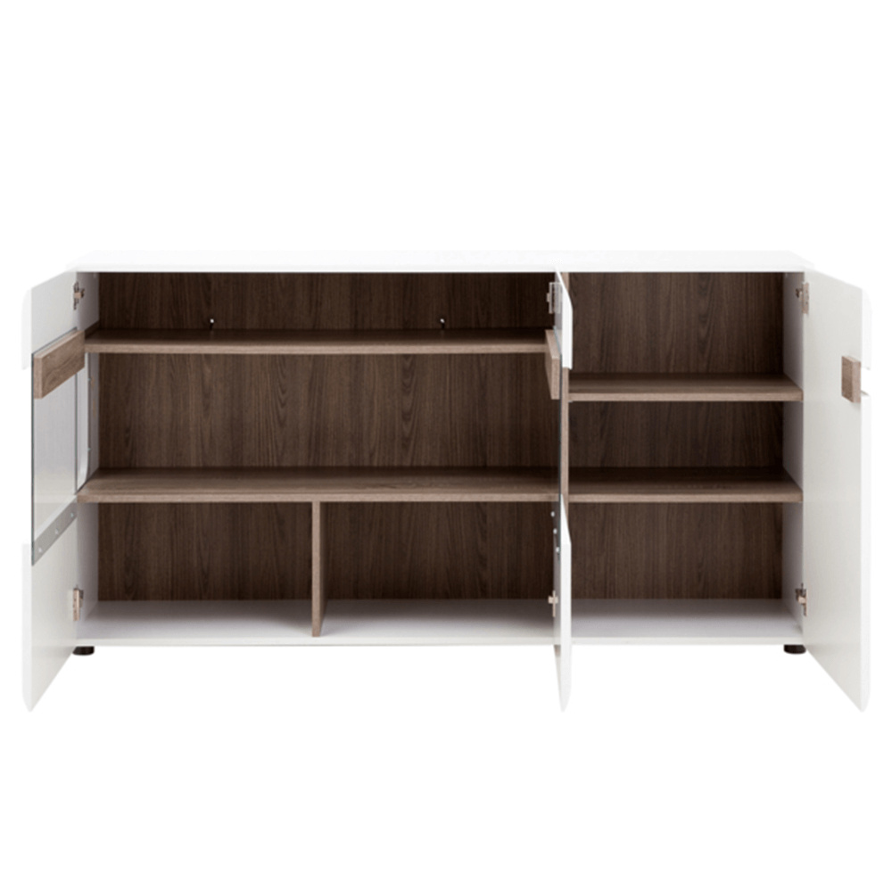 komoda 3dveřová Lynatet TYP 42, Materiál: laminovaná DTD/fóliovaná MDF/sklo Barva: dub sonoma truflový/bílá s extra vysokým leskem Rozměry (ŠxHxV): 164x42x86,5 cm Tloušťka materiálu: 16 mm Třídveřová Korpus je v matném provedení Dvířka jsou v provedení extra vysoký lesk Tloušťka materiálu vnitřní poličky: 1,5 cm Na nožičkách Dodáváno v demontu