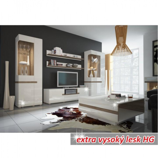 Komoda, bílá extra vysoký lesk HG/dub sonoma tmavý truflový, LYNATET TYP 42