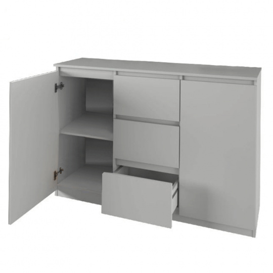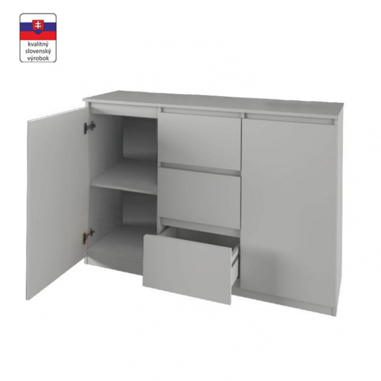 Komoda LOGAN NEW 03 dvoudveřová, s šuplíky Barevné provedení: bílá Materiál: DTD laminovaná Rozměry (ŠxHxV): 137,6x40x93,6 cm Tloušťka materiálu: 16 mm Dodávané v demontu