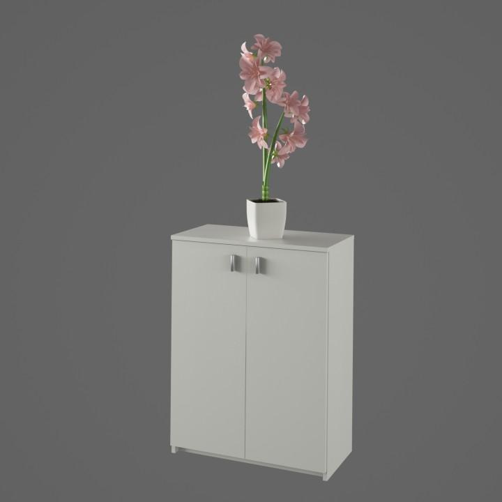 Dvoudveřová komoda NATALI TYP4 Barva: bílá Materiál: DTD laminovaná Rozměry (ŠxHxD): 64x31,8x85 cm Tloušťka materiálu: 16 mm Hmotnost: 25,5 kg Dodávané v demontu.