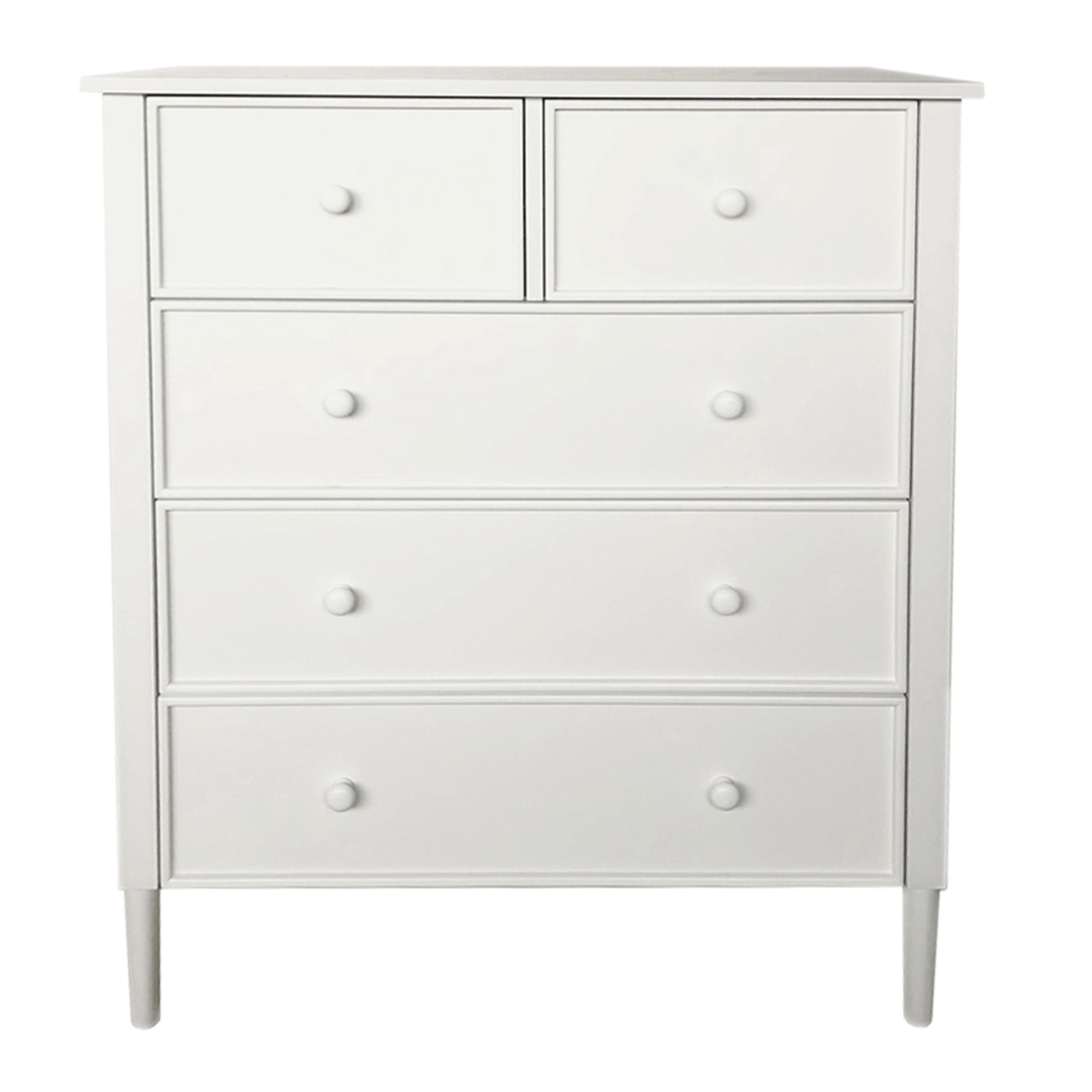 Materiál: MDF Barva: bílá Rozměry (ŠxHxV): 80x40x95cm Tloušťka materiálu: 1,5 - 3,7 cm Tři větší šuplíky Dva menší šuplíky Dřevěné úchytky Barva úchytek: bílá Nosnost: 30 kg Nosnost šuplíku: 10 kg Na nožičkách Výška nožiček: 15 cm Doporučujeme připevnit ke zdi Provensálský styl Dodáváno v demontu