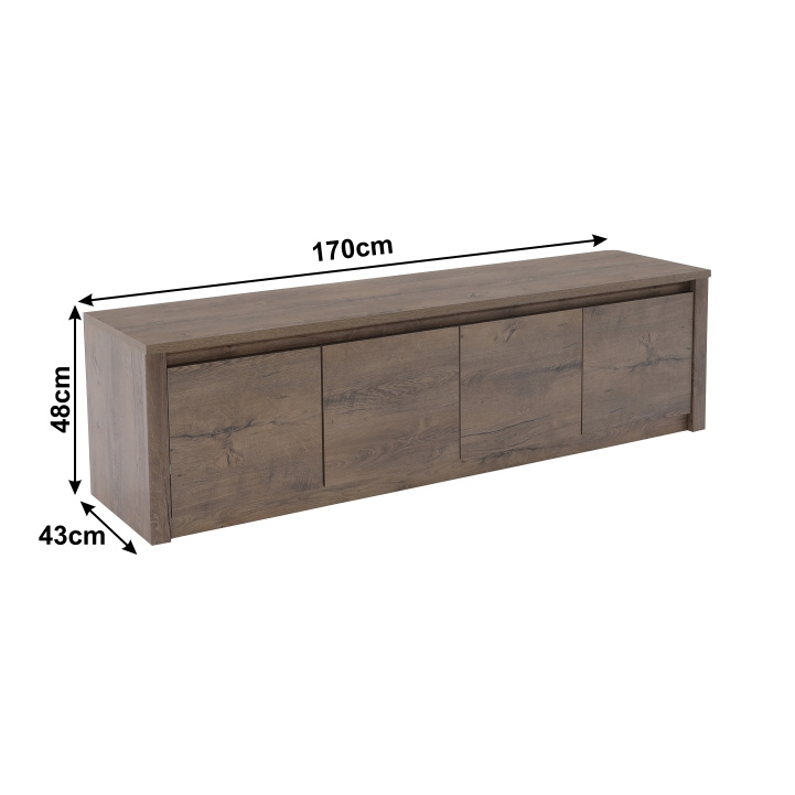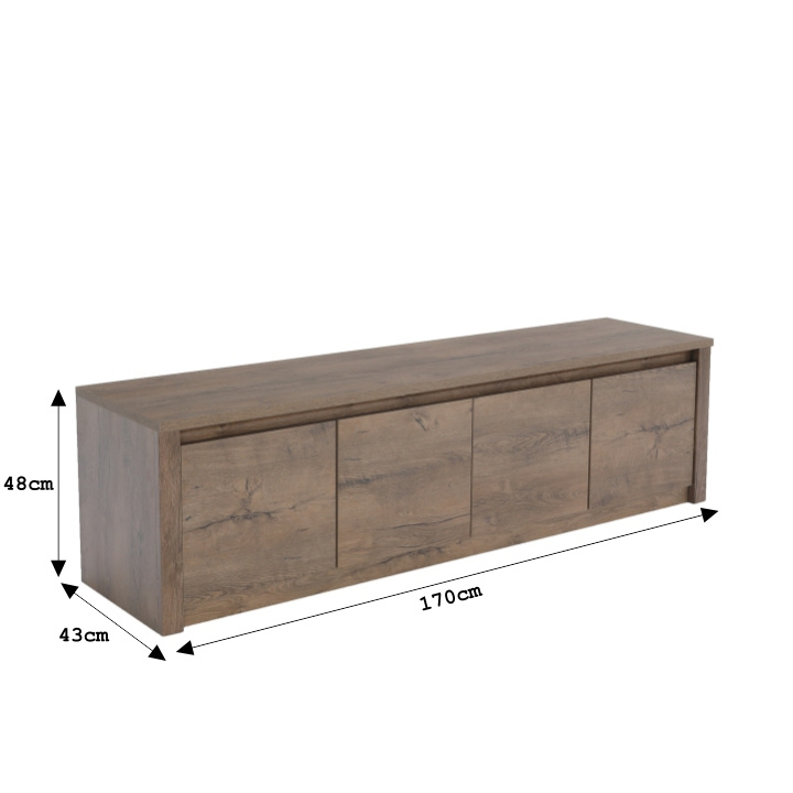 Komoda K4D, MONTANA Materiál: DTD laminovaná, ABS hrany Barevné provedení: dub lefkas tmavý Rozměry (ŠxHxV): 170x43x48 cm. Tloušťka materiálu: 15 mm Dodávané v demontu.