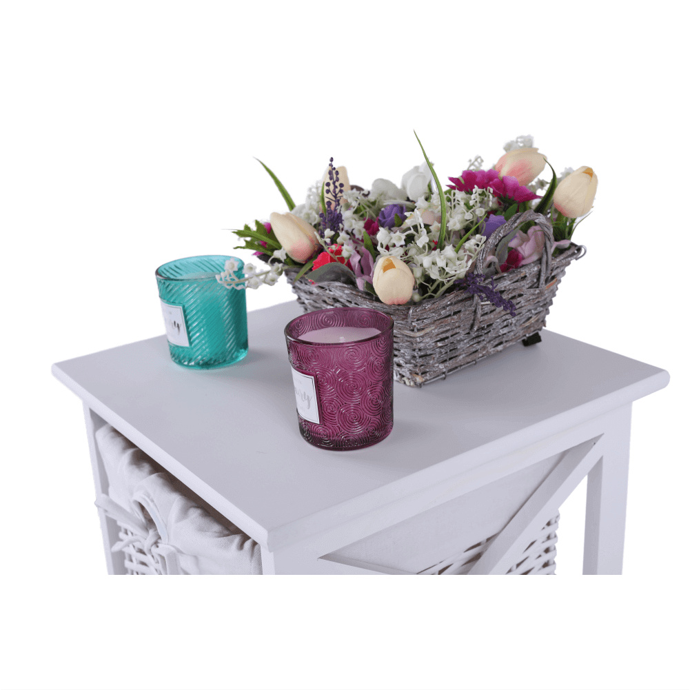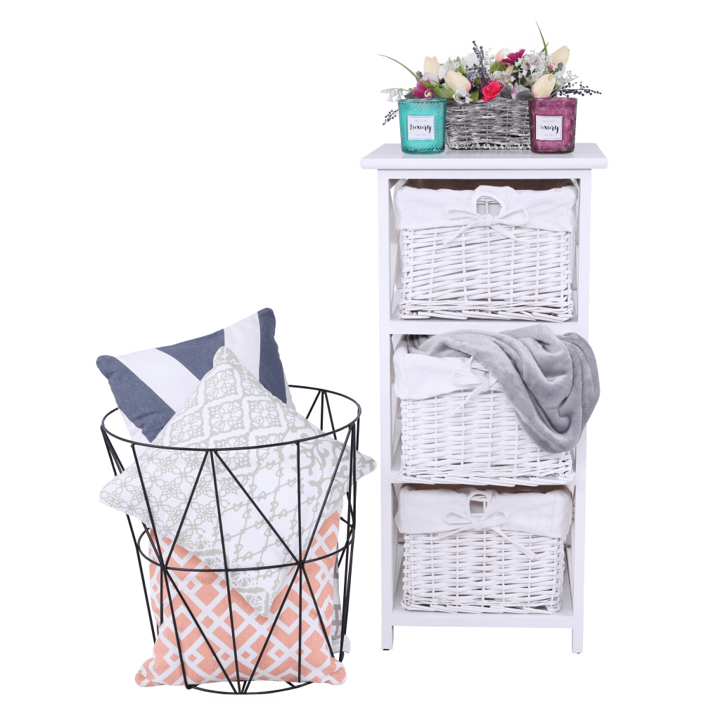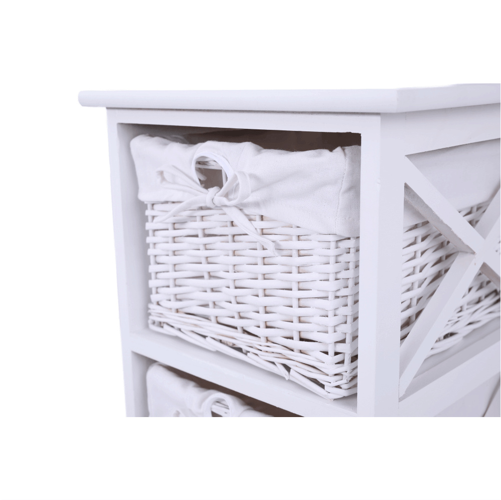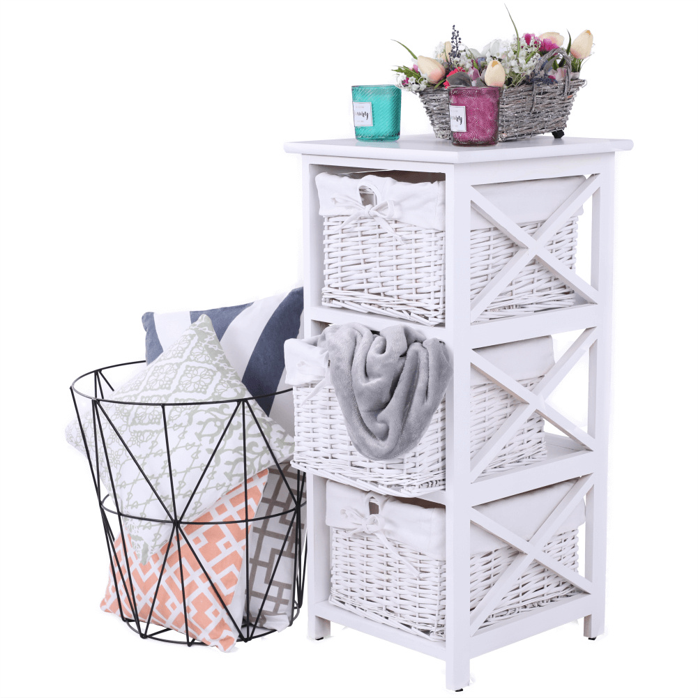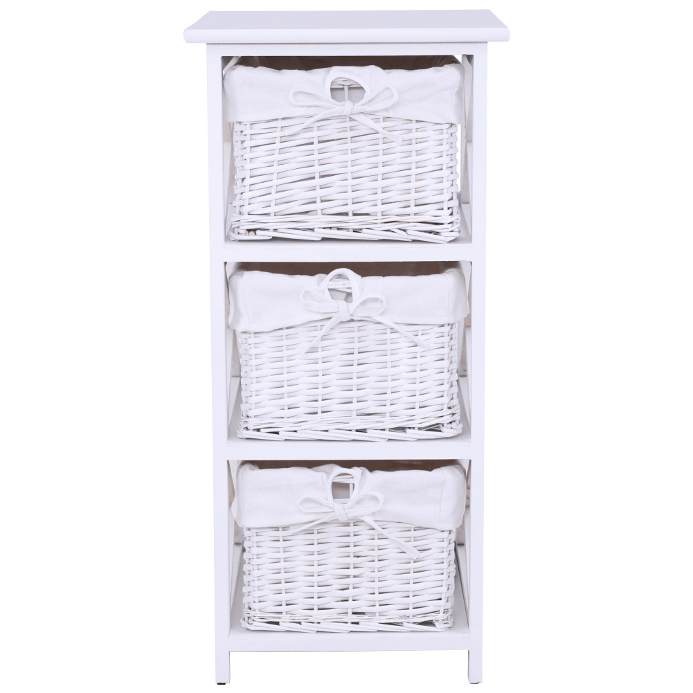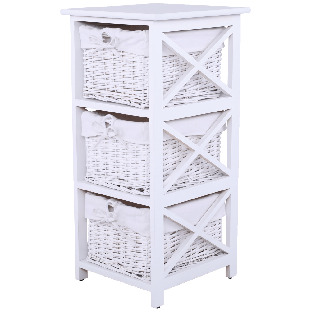 Komoda se třemi košíky Rafaello 3 Materiál: proutí / dřevo / látka Barva: bílá Rozměry (ŠxHxV): 36x37x76 cm Dodávané v monte.