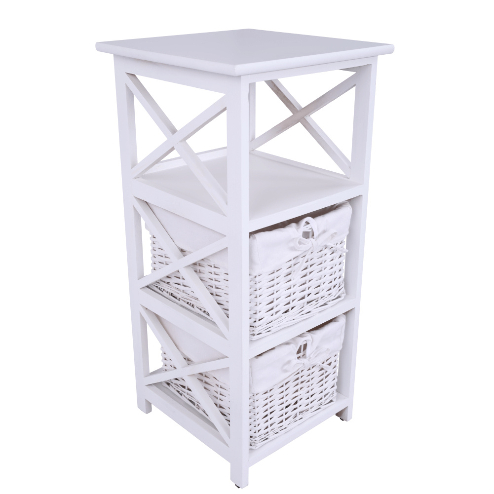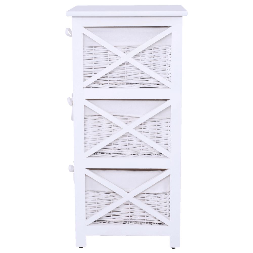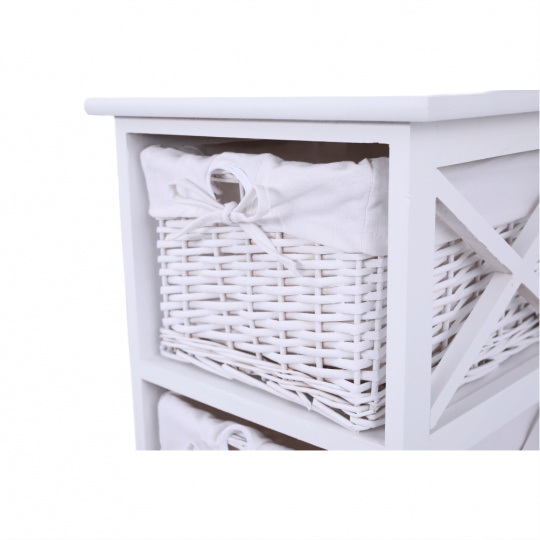 Komoda, dřevo / proutí/ látka, bílá, Rafaello 3