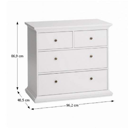 Komoda PARIS 76716 Materiál: DTD laminovaná/lakovaná MDF Barevné provedení: bílá Rozměry (ŠxHxV): 96,2x48,5x86,9 cm Tloušťka materiálu: 18 mm Dodáváno v demontu.