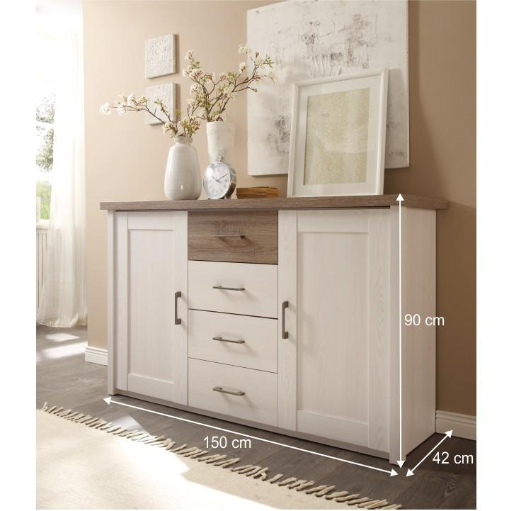 komoda LUMERA Materiál: DTD fóliovaná Barva: Dub sonoma truflový / pinie bílá Rozměry (ŠxHxV): 150x42x90 cm Tloušťka materiálu korpus: 18/36 mm Dodávané v demontu.