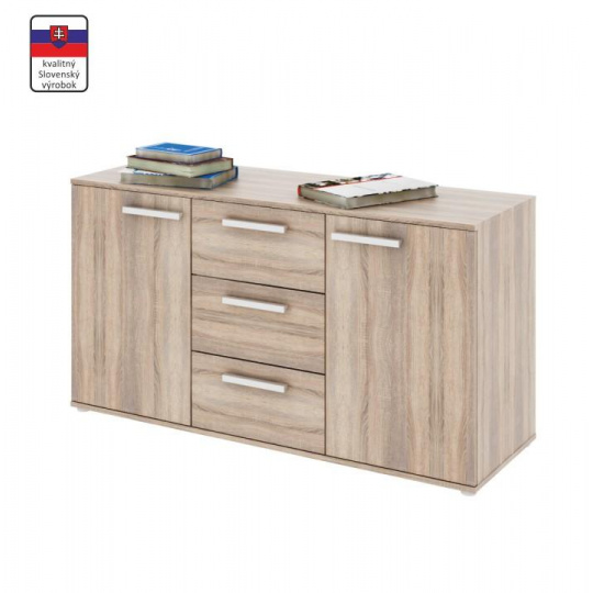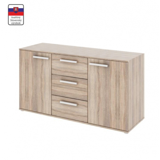 Komoda, DUNAJ TYP 11 Materiál: DTD laminovaná Provedení: dub sonoma Rozměry (ŠxHxV): 135x47x72,6 cm Tloušťka materiálu: 16 mm Kvalitní slovenský výrobek Dodávané v demontu.