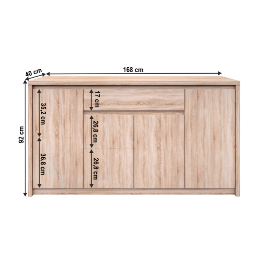 Komoda 4D1S NORTY TYP 11 Materiál: DTD laminovaná Provedení: dub sonoma Rozměry (ŠxHxV): 168x40x92 cm Dodávané v demontu.