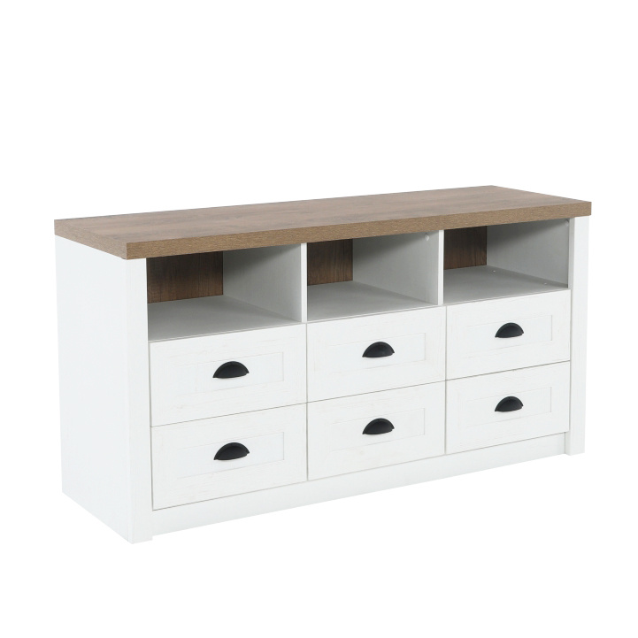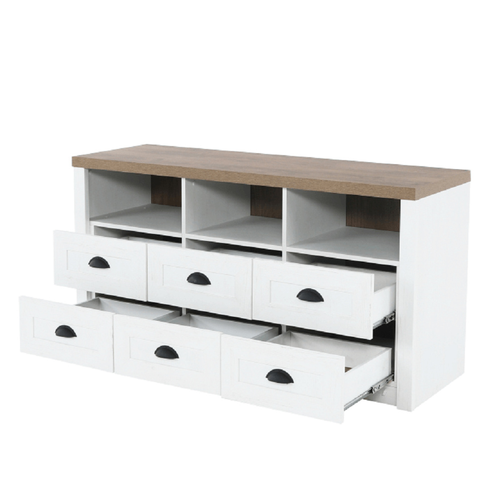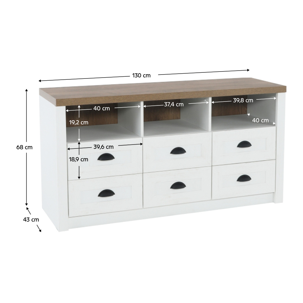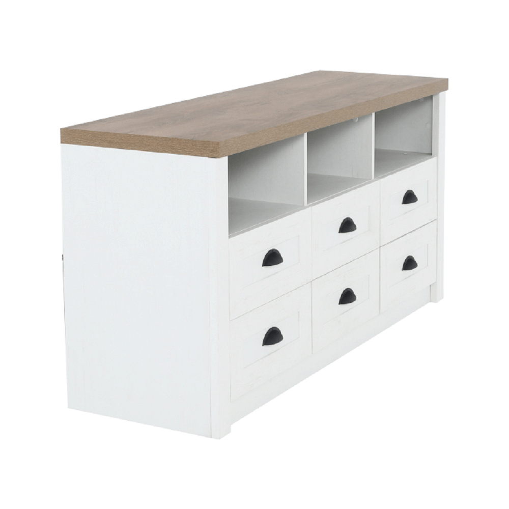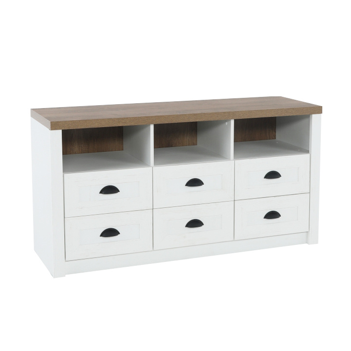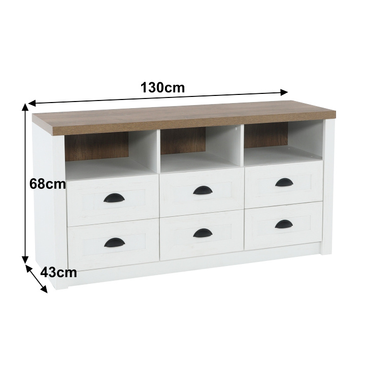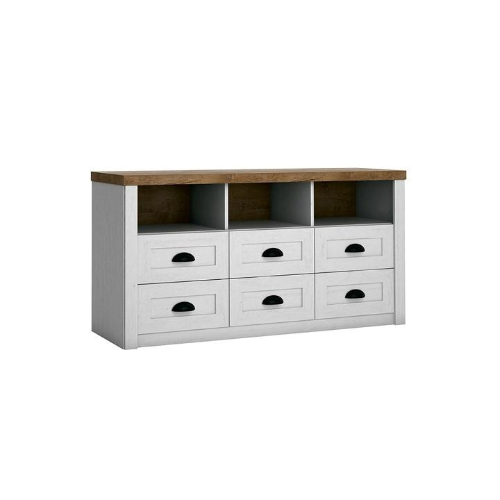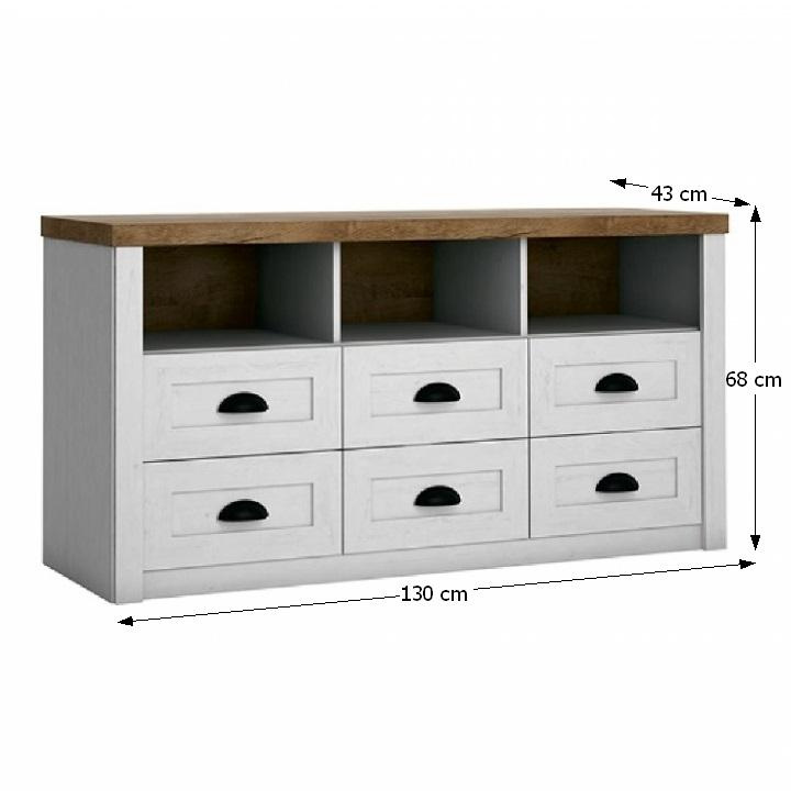 Komoda PROVANCE v barevném provedení sosna andersen / dub lefkas. Rozměry (ŠxHxV): 130x43x88 cm Tloušťka materiálu korpus: 15 mm Tloušťka materiálu vrchní desky: 36 mm Dodávané v demontu. Hmotnost: 49kg