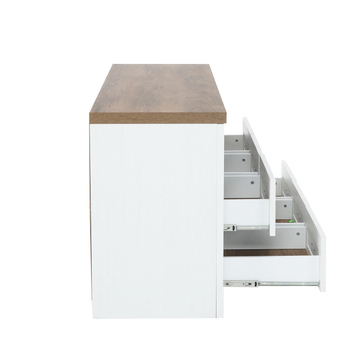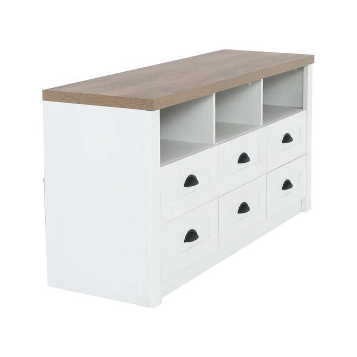 Komoda PROVANCE v barevném provedení sosna andersen / dub lefkas. Materiál laminovaná DTD. Rozměry (ŠxHxV): 130x43x68 cm Tloušťka materiálu korpus: 15 mm Tloušťka materiálu vrchní desky: 36 mm Dodávané v demontu.