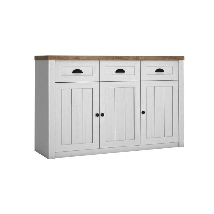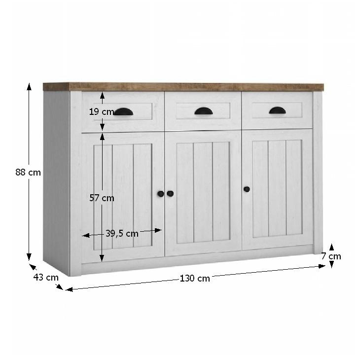 Komoda PROVANCE v barevném provedení sosna andersen / dub lefkas. Materiál laminovaná DTD. Rozměry (ŠxHxV): 130x43x88 cm Tloušťka materiálu korpus: 15 mm Tloušťka materiálu vrchní desky: 36 mm Dodávané v demontu.