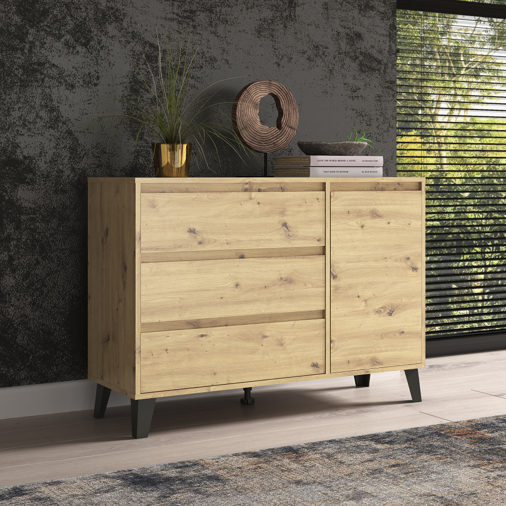 Komoda, dub artisan, BOGAN NEW 1D3S