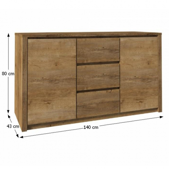 Komoda, MONTANA K2DP Materiál: DTD laminovaná, ABS hrany, barevné provedení: dub lefkas tmavý. Rozměry ŠxHxV: 140x43x80 cm Tloušťka materiálu: 15 mm Dodávané v demontu.