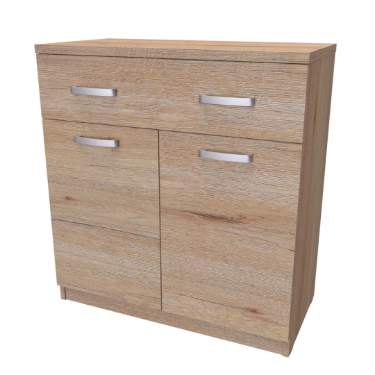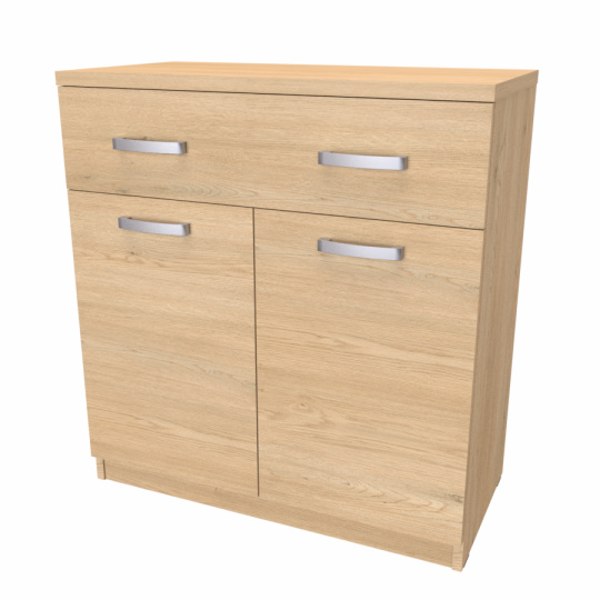Komoda s dvířky a šuplíkem. Svým designem odlehčí prostor, kterým tak navodí pocit vzdušnosti celé místnosti. Komodu Jony si u nás můžete vybrat v mnoha různých dekorech. Kvalitní kování a spojovací materiál je bez použití plastových součástek, vyjma ochranných krytek. Na zásuvkách komody Jony je kovový mechanismus, díky němuž lze zásuvku vysunout celou. Vyrobeno z lamina o síle 18 / 25 mm.