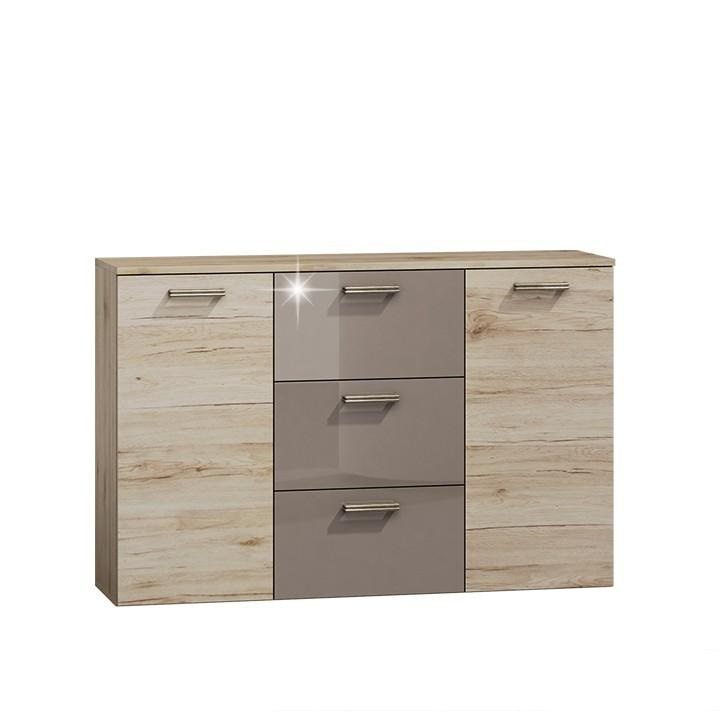 Komoda, dub san marino / latte vysoký lesk HG, ASSOR