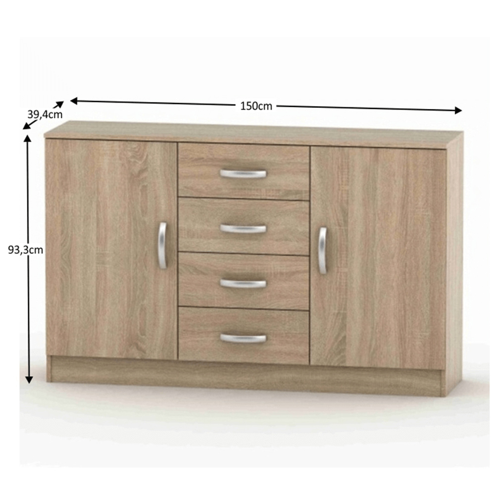 Kombinovaná komoda, BETTY 2 Materiál: DTD laminovaná Barva: Dub sonoma Rozměry (ŠxHxV): 150x39,4x93,9 cm Tloušťka materiálu korpus: 16 mm Dodávané v demontu.