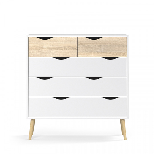 Materiál: DTD laminovaná Barva: bílá / dub sonoma Rozměry komody (ŠxHxV): 98,7x39,1x100,9 cm Tloušťka materiálu: 1,6 cm Dodávané v demontu