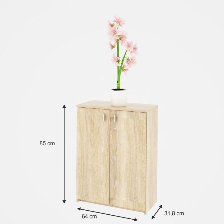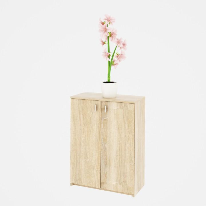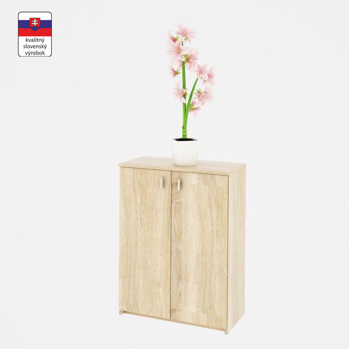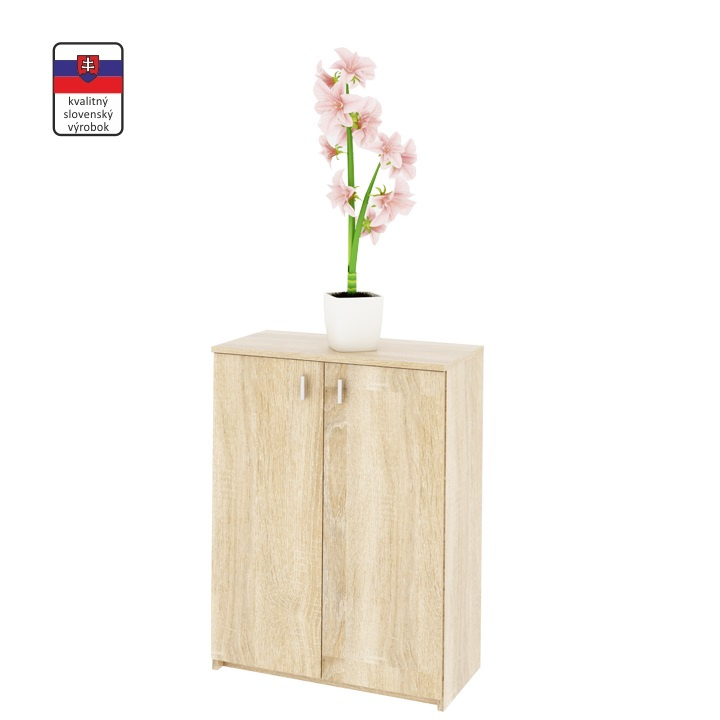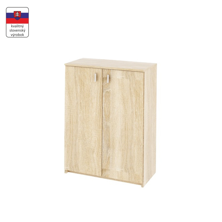 Dvoudveřová komoda NATALI TYP4 Barva: dub sonoma Materiál: DTD laminovaná Rozměry (ŠxHxV): 64x31,8x85 cm Tloušťka materiálu: 16 mm Hmotnost: 25,5 kg Dodávané v demontu.