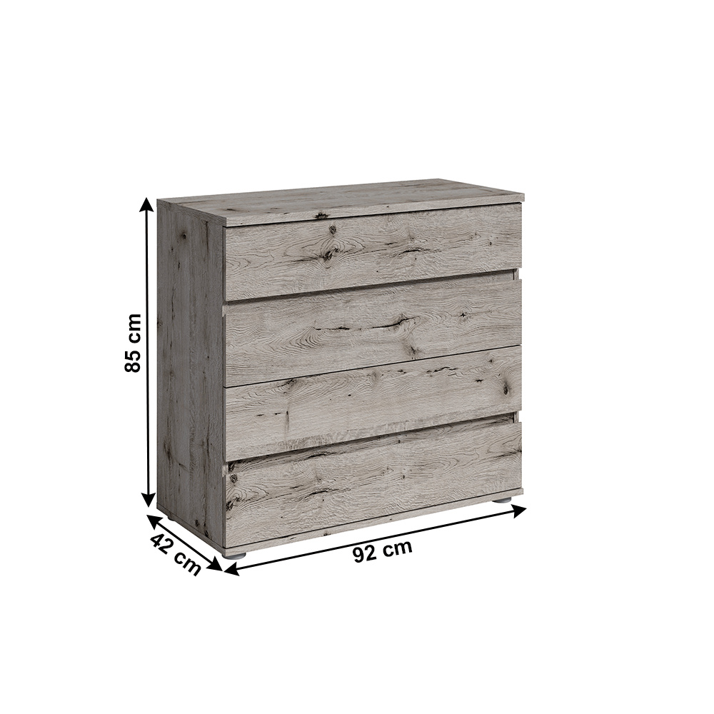 Materiál konstrukce: DTD laminovaná Barva: dub Welington Rozměry (ŠxHxV): 92x42x85 cm Nosnost: 10 kg Se 4 zásuvkami na nožičkách Pevná a stabilní konstrukce Komodu doporučujeme připevnit ke stěně Ze ložnicové sestavy Togos Dodávané v demontu
