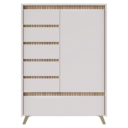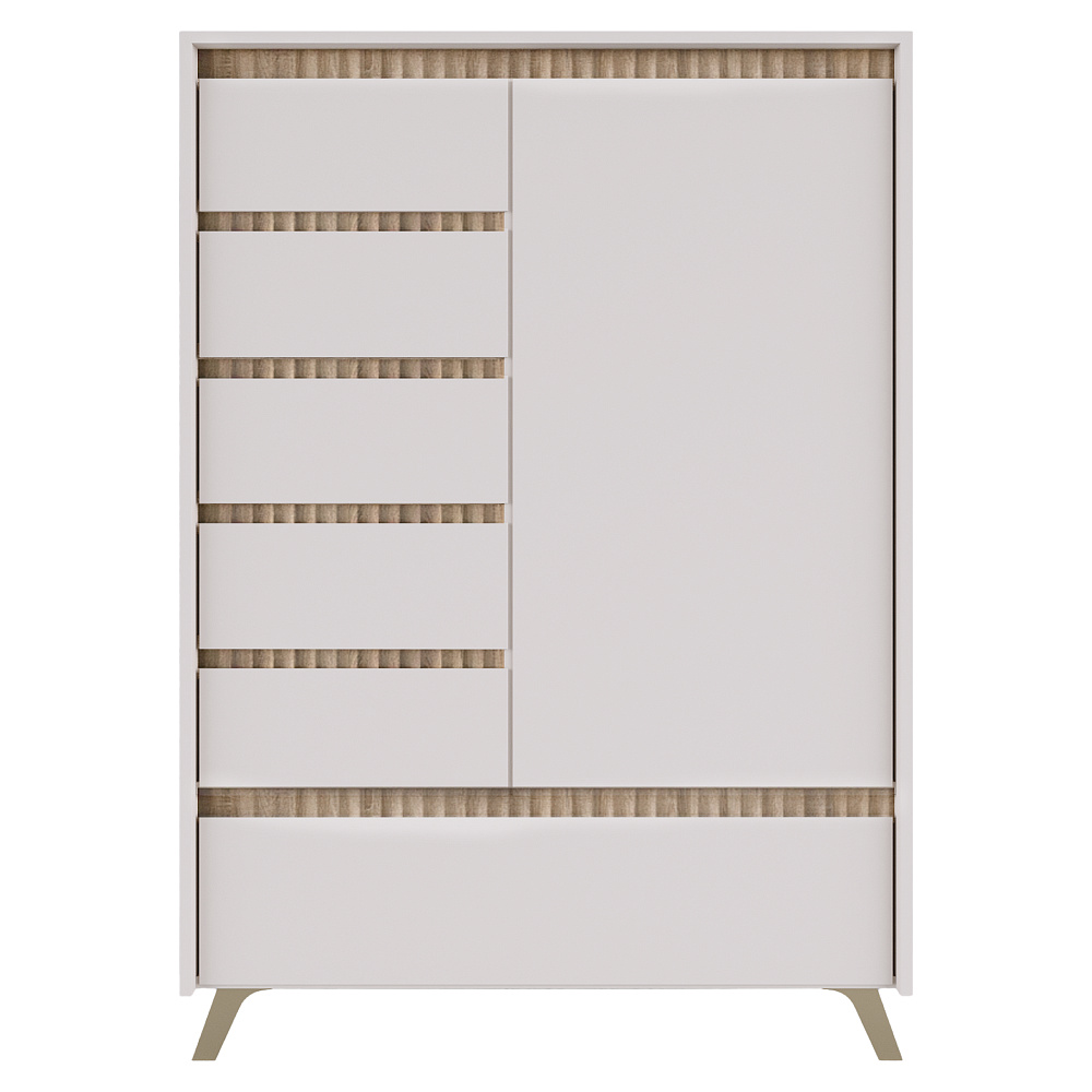 Materiál: laminovaná DTD/fóliovaná MDF/PVC fólie Barva: kašmír/dub sonoma Rozměry (ŠxHxV): 95x45x152,5 cm Tloušťka materiálu: 1,6-1,9 cm Jednodveřová Výklopná skříňka Pět zásuvek Police Na nožičkách Barva nožiček: přírodní Výška nožiček: 12 cm Plnovýsuvné kuličkové ložisko Panty Hrana : papír impregnovaný termosetovými polymery/PVC Tloušťka materiálu ABS: 0,5 mm Tloušťka dřevovláknité desky zadní strana/dno zásuvky: 0,3 cm Barva zadní strana/dno zásuvky: bílá Dekorativní frézování Bez úchytek Moderní design Dodáváno v demontu